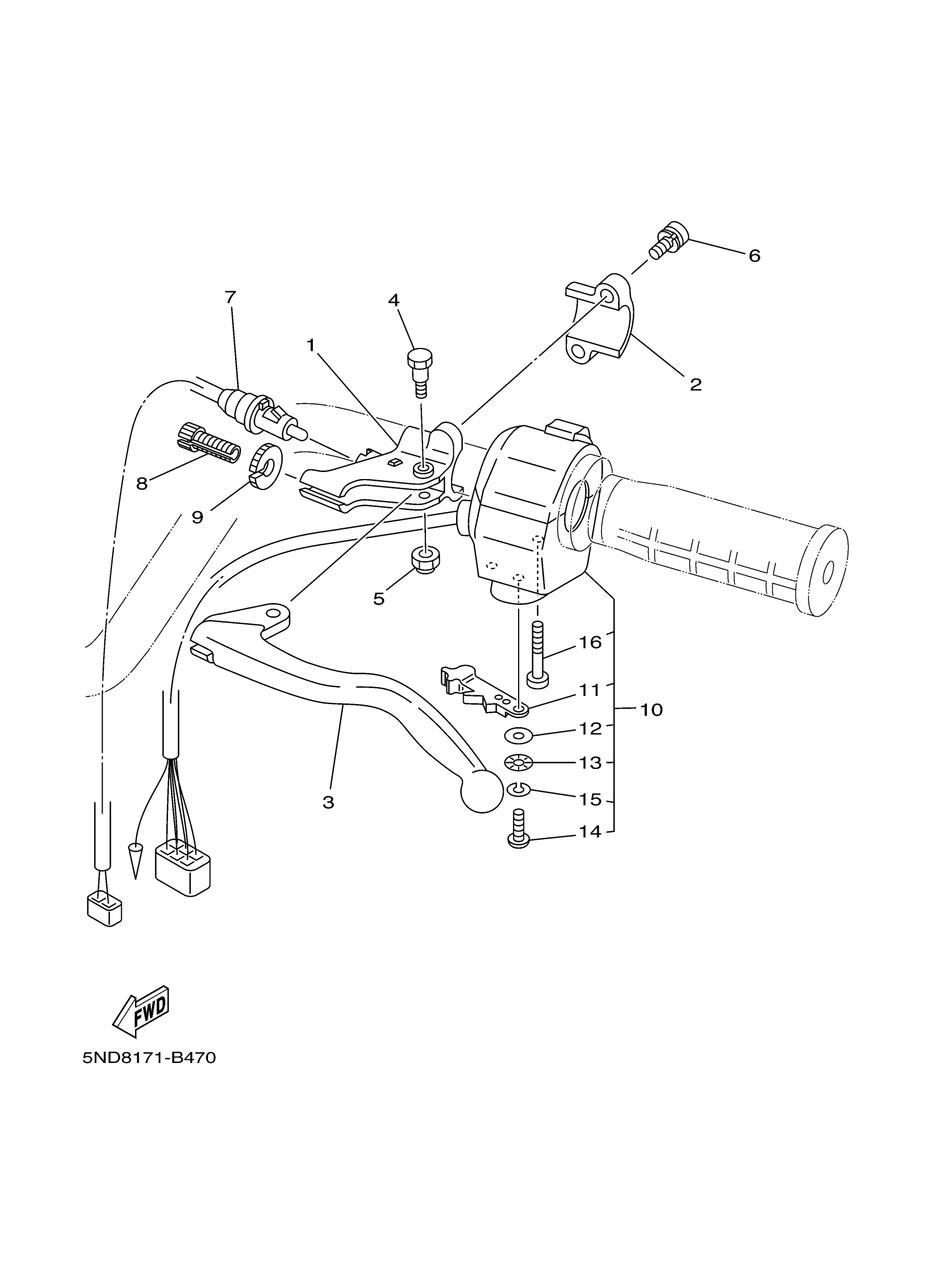 Yamaha YFM45FXZW (WOLVERINE 450 4WD) 3C2K 2010 HANDLE SWITCH & LEVER Diagram