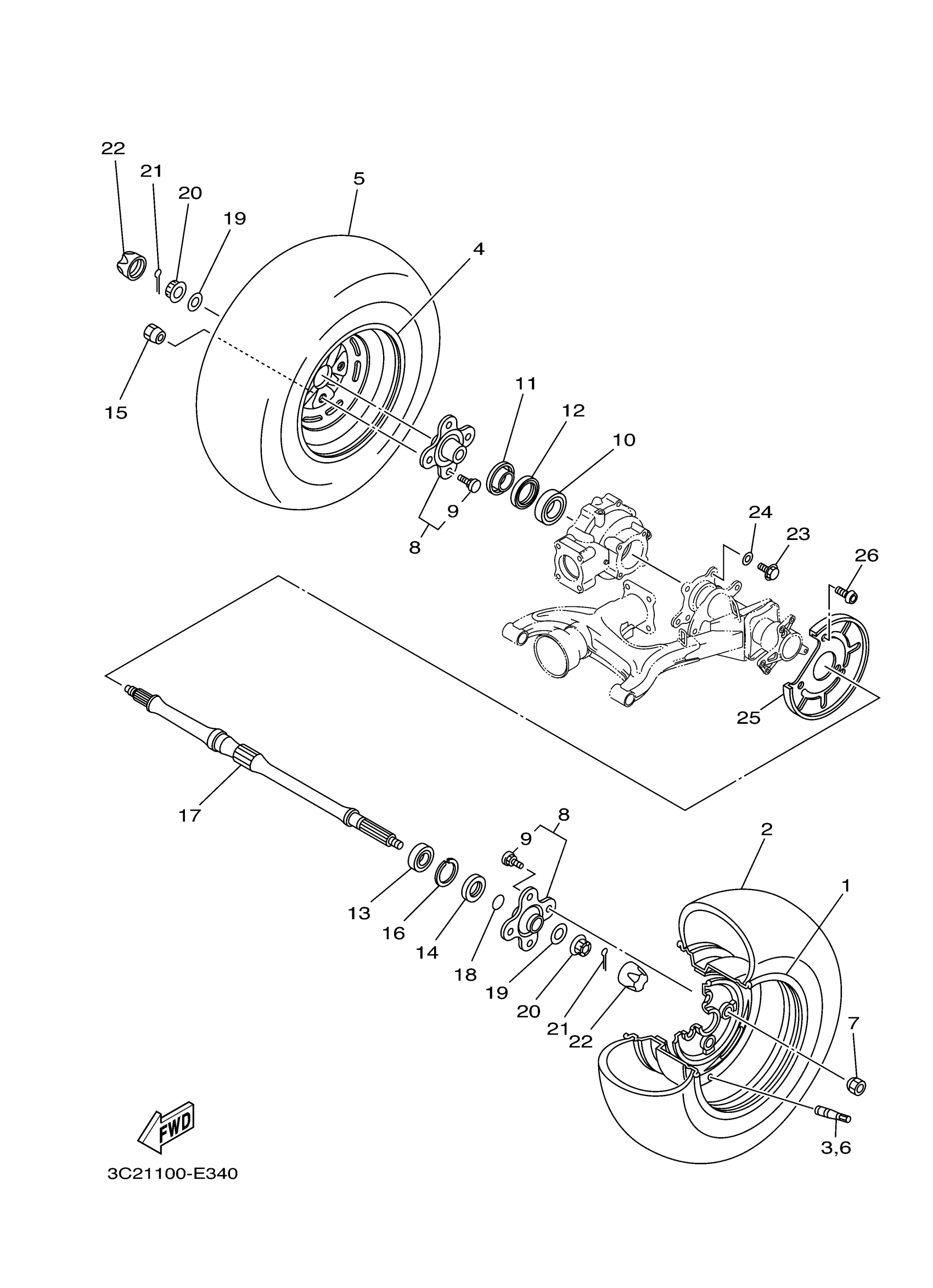 Yamaha YFM45FXZW (WOLVERINE 450 4WD) 3C2K 2010 REAR WHEEL Diagram