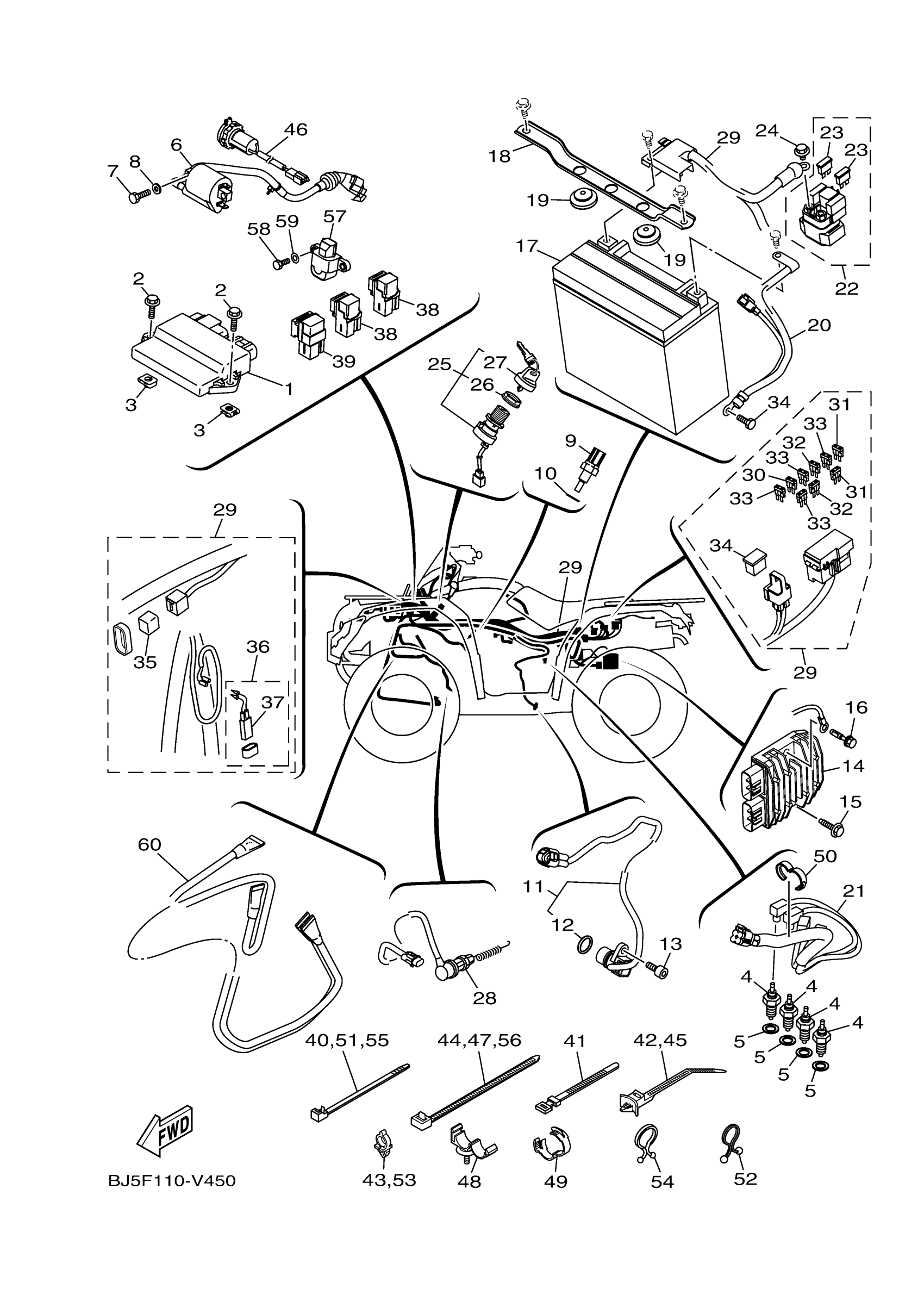 Yamaha YFM45KDXLR (KODIAK 450) BJ5F1 2020 ELECTRICAL 1 Diagram