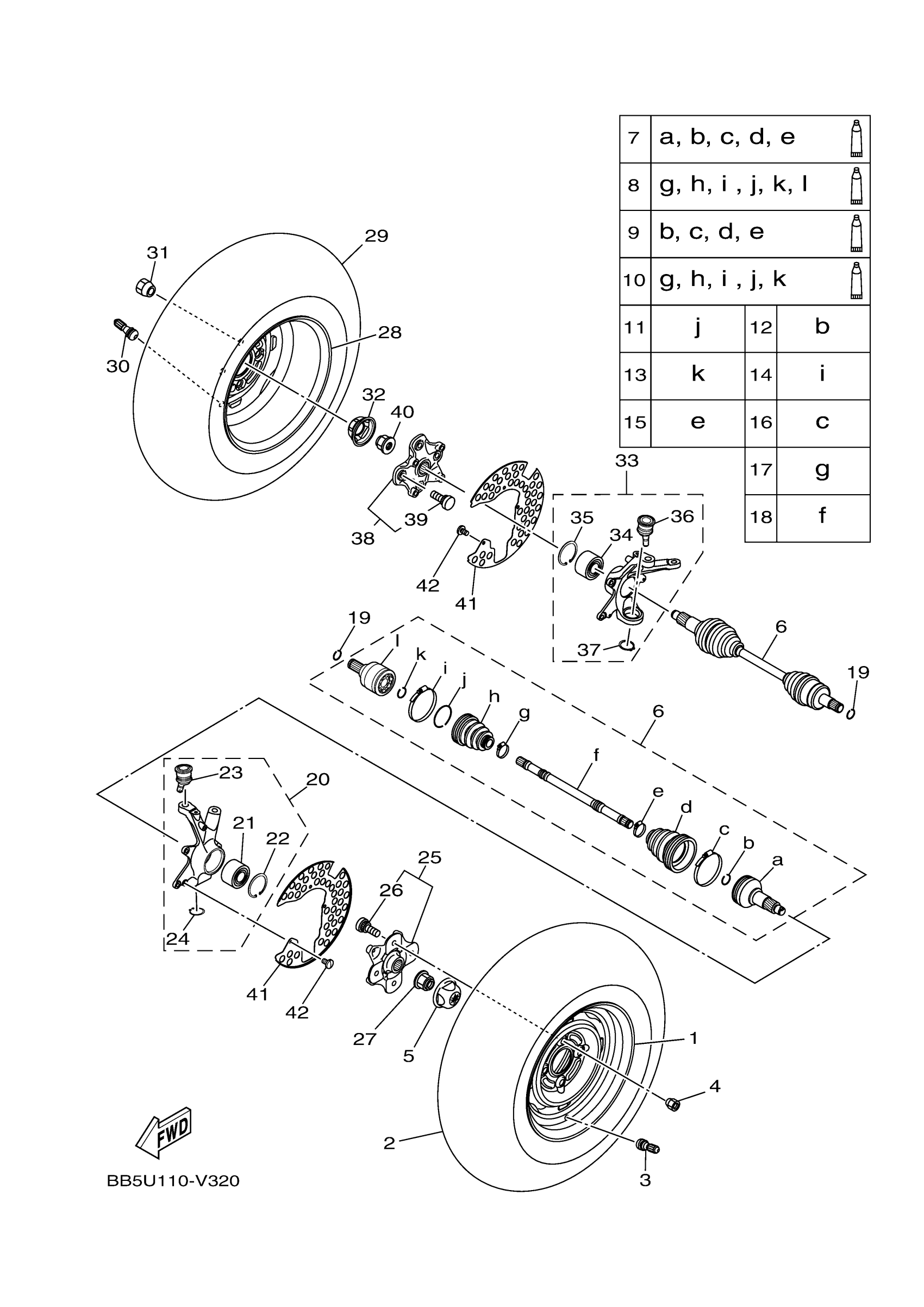 Yamaha YFM45KDXPG (KODIAK 450) BJ5V 2023 FRONT WHEEL Diagram