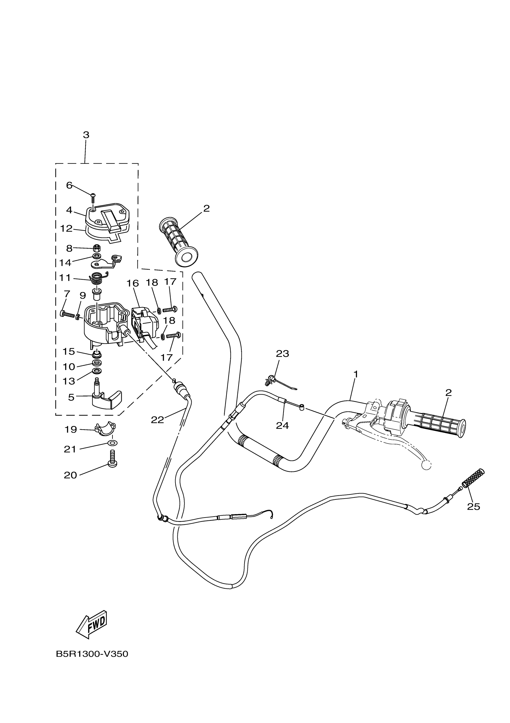 Yamaha YFM45KPANG (KODIAK 450 EPS) BEYF 2022 STEERING HANDLE & CABLE Diagram