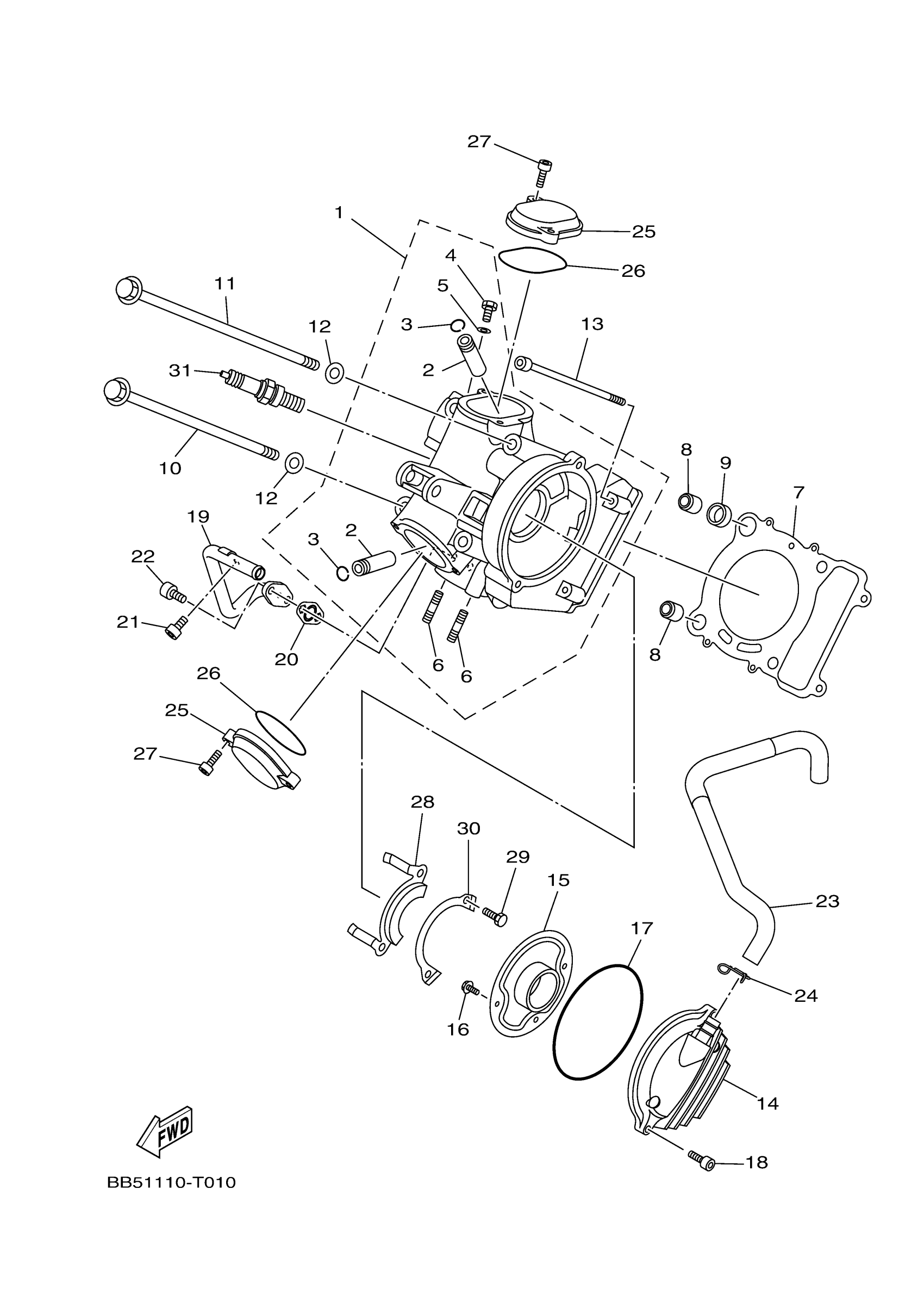 Yamaha YFM45KPLKL (KODIAK 450 EPS 4WD) BB5F 2019 CYLINDER HEAD Diagram