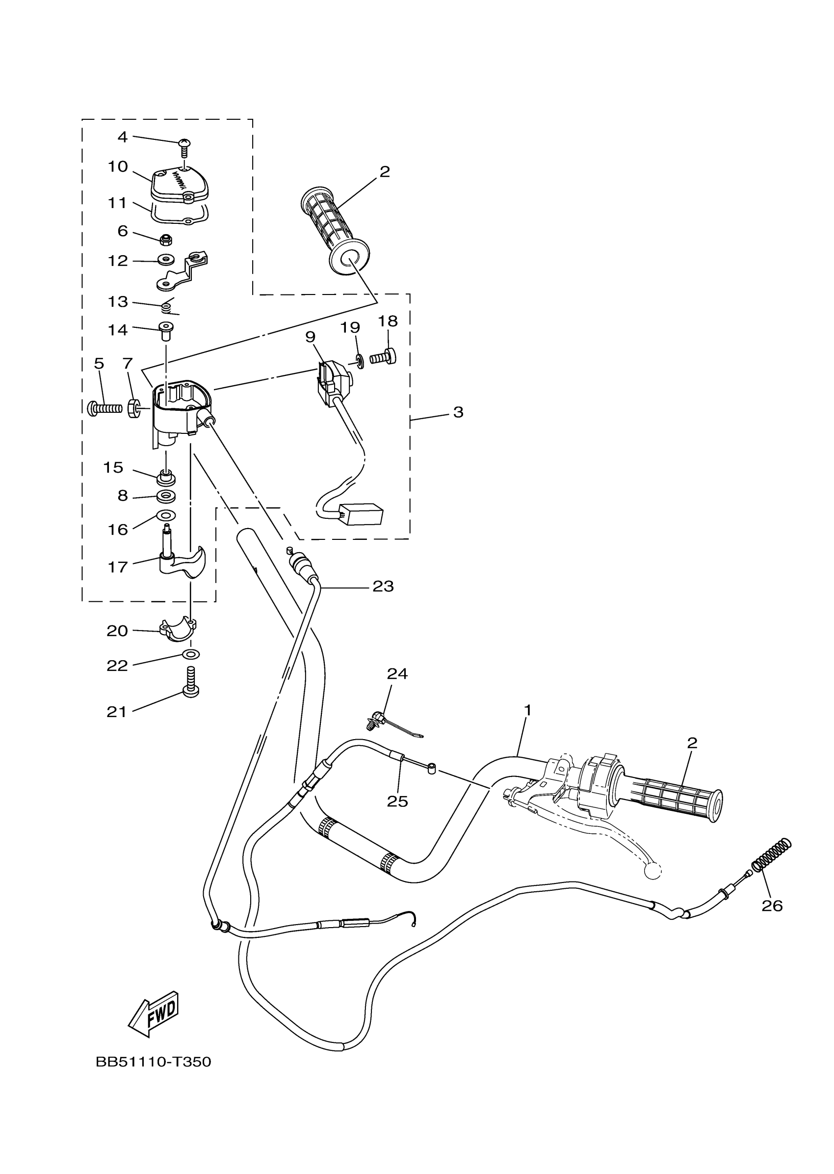 Yamaha YFM45KPLKL (KODIAK 450 EPS 4WD) BB5F 2019 STEERING HANDLE CABLE Diagram
