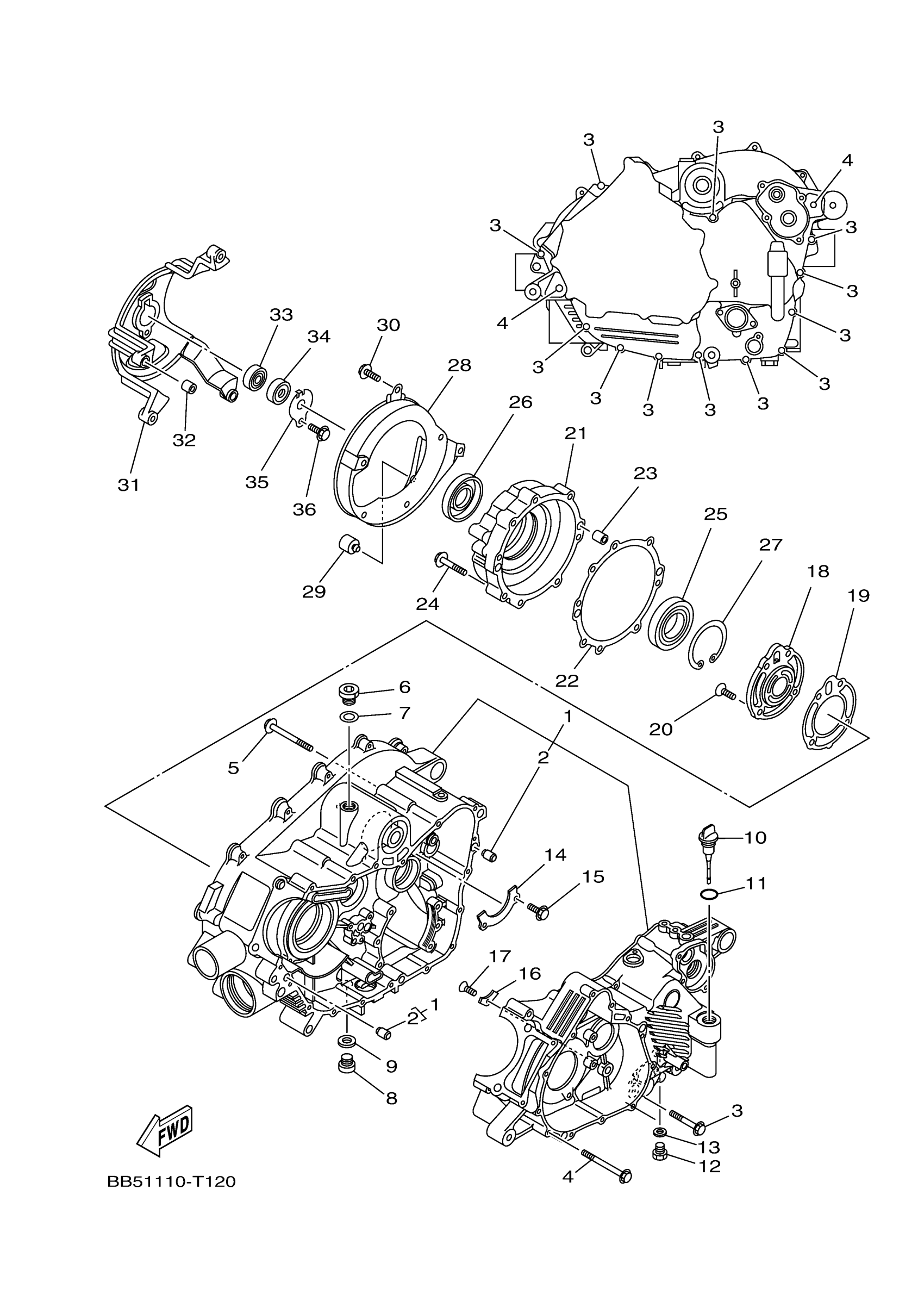 Yamaha YFM45KPXJG (KODIAK 450 EPS 4WD) BB51 2018 CRANKCASE Diagram