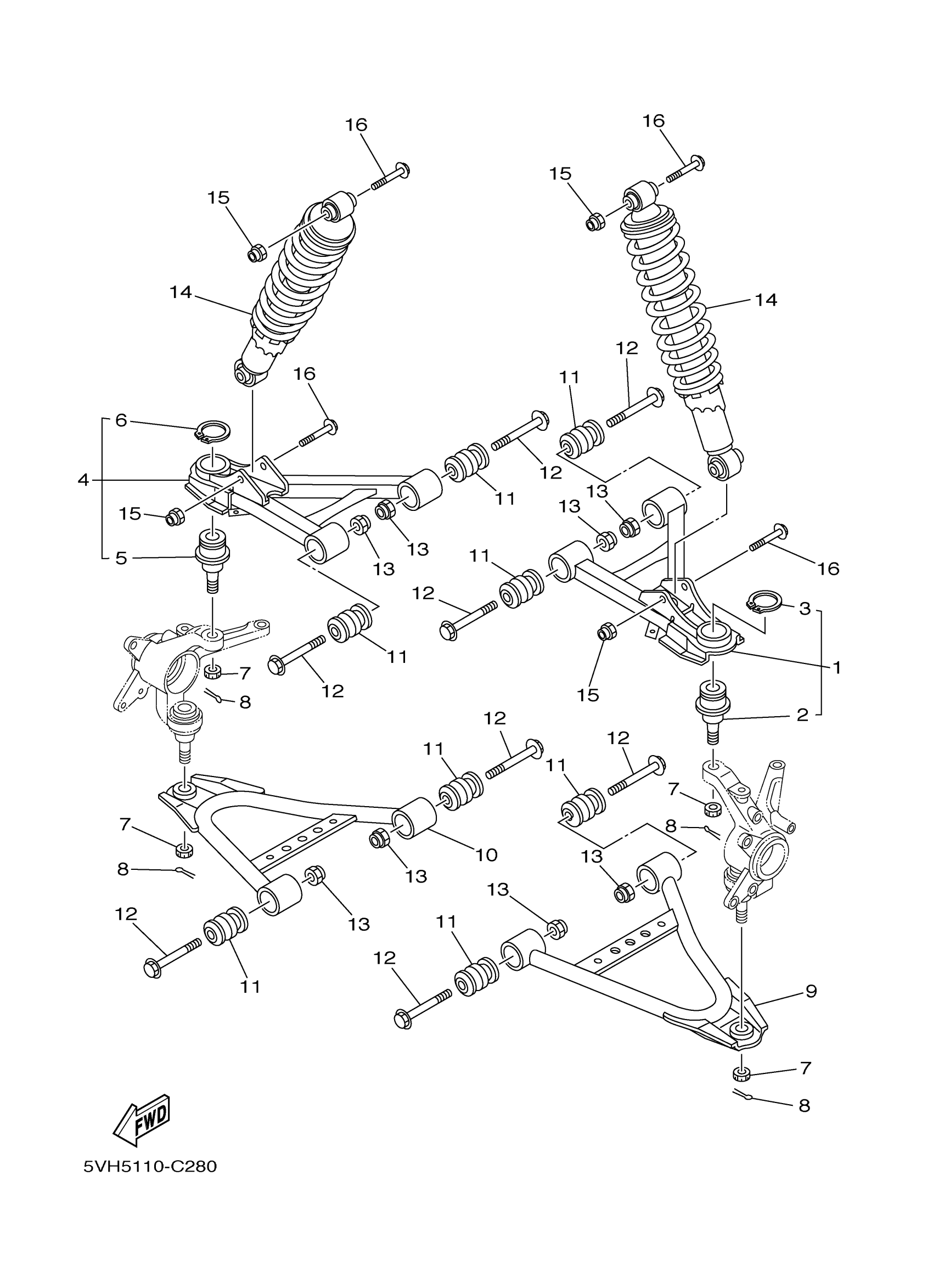 Yamaha YFM4AS (KODIAK 400 2WD) 5VH5 2004 FRONT SUSPENSION WHEEL Diagram