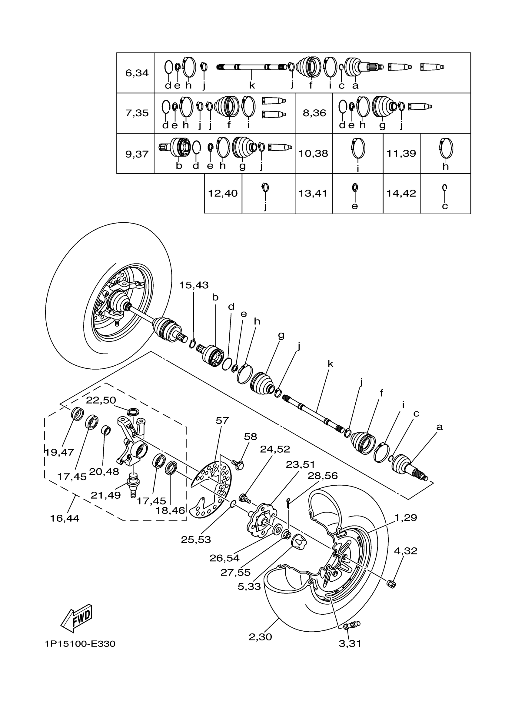 Yamaha YFM4FAV (KODIAK 400 4WD) 1P15 2006 FRONT WHEEL Diagram