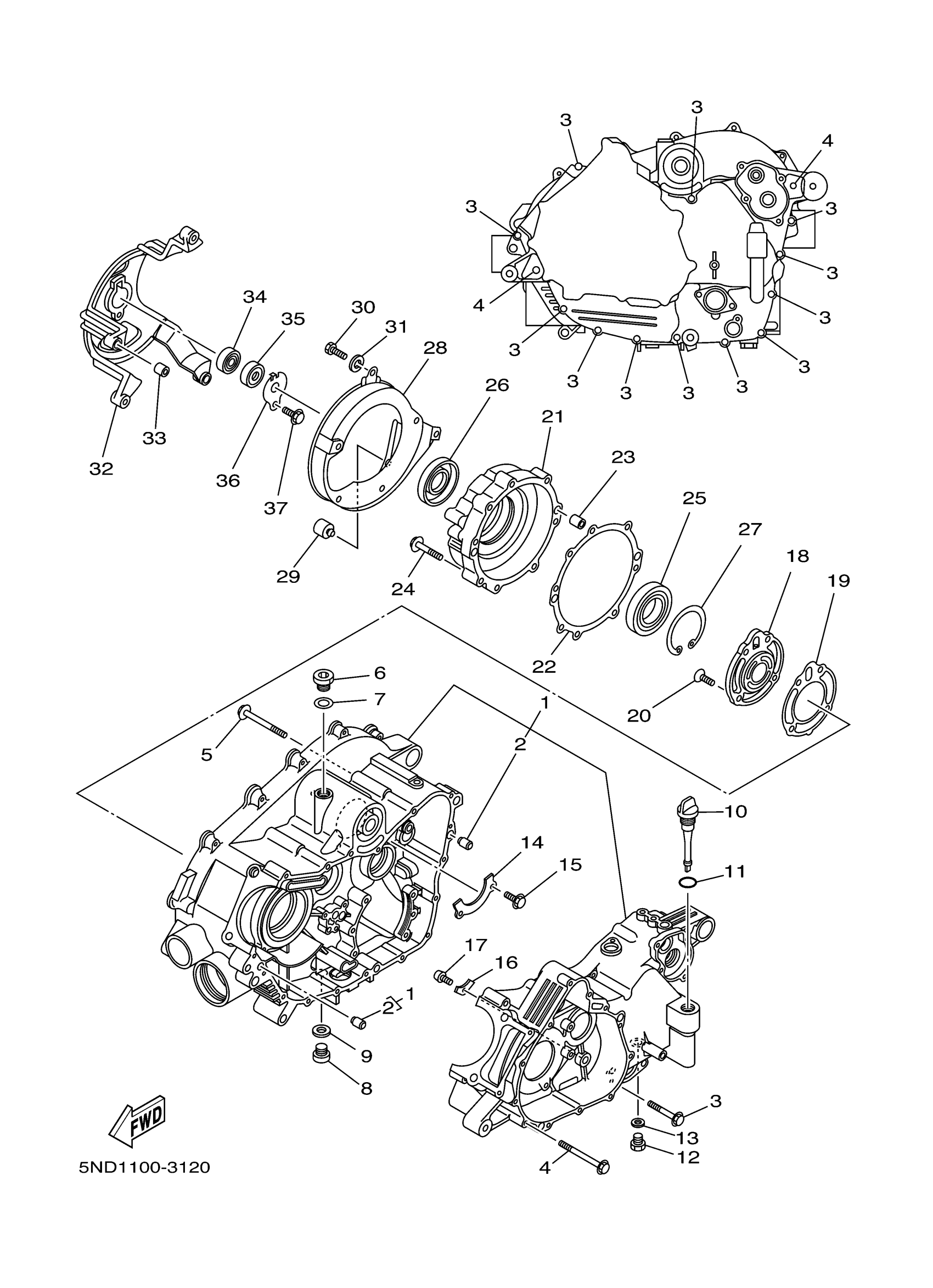 Yamaha YFM4FGHX (GRIZZLY 400 4WD HUNTER) 1P1G 2008 CRANKCASE Diagram