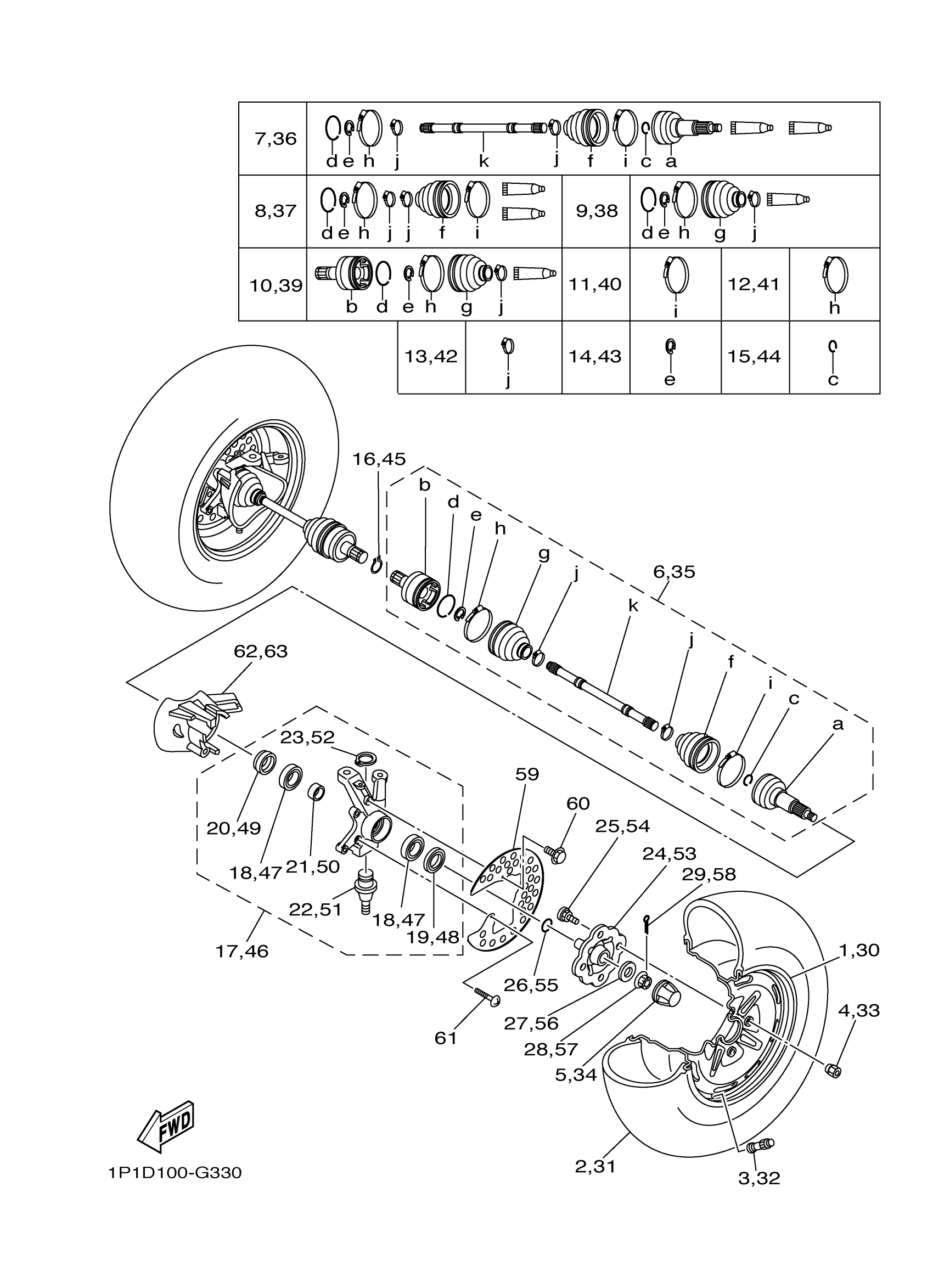 Yamaha YFM4FGHX (GRIZZLY 400 4WD HUNTER) 1P1G 2008 FRONT WHEEL Diagram
