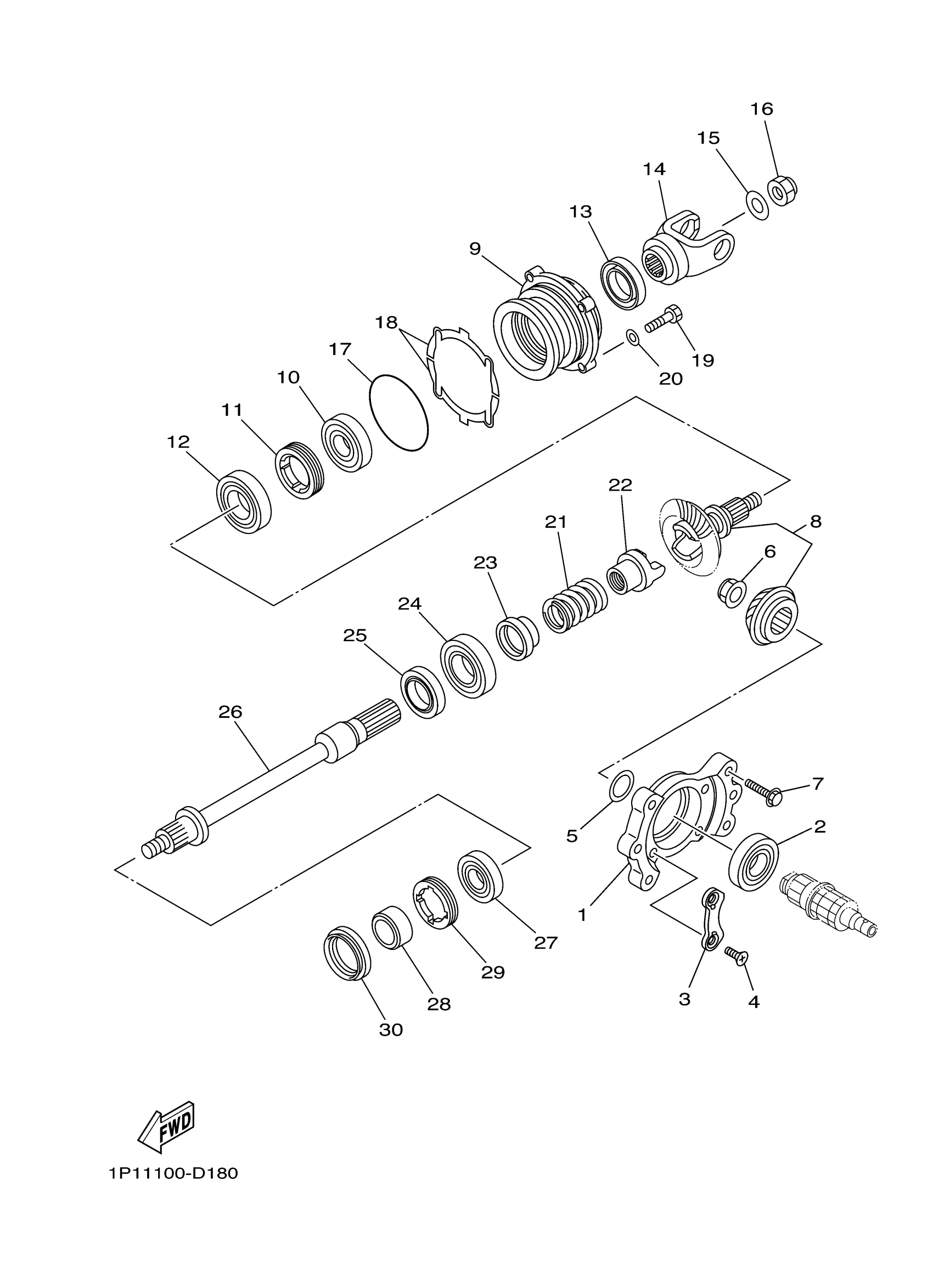 Yamaha YFM4FGHX (GRIZZLY 400 4WD HUNTER) 1P1G 2008 MIDDLE DRIVE GEAR Diagram