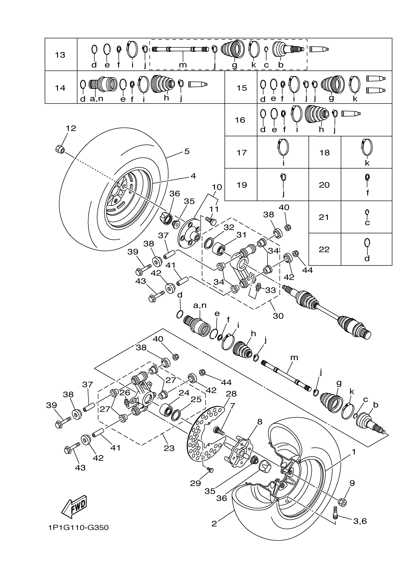 Yamaha YFM4FGHX (GRIZZLY 400 4WD HUNTER) 1P1G 2008 REAR WHEEL Diagram