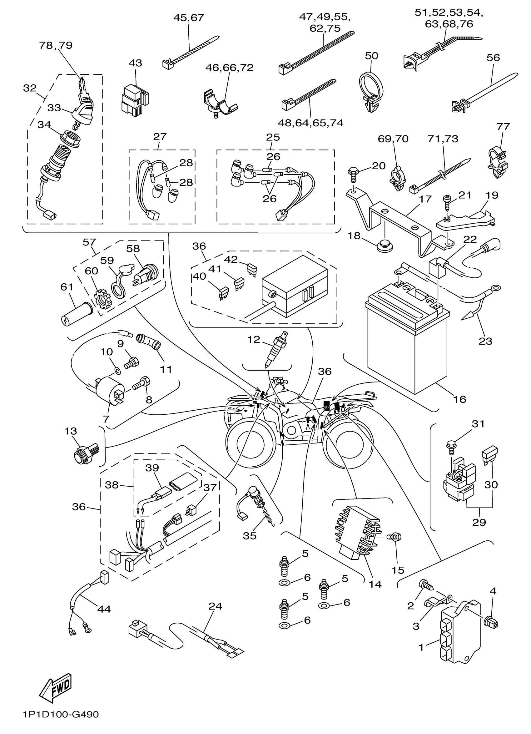 Yamaha YFM4FGXR (GRIZZLY 400 4WD) 1P1D1 2008 ELECTRICAL 1 Diagram