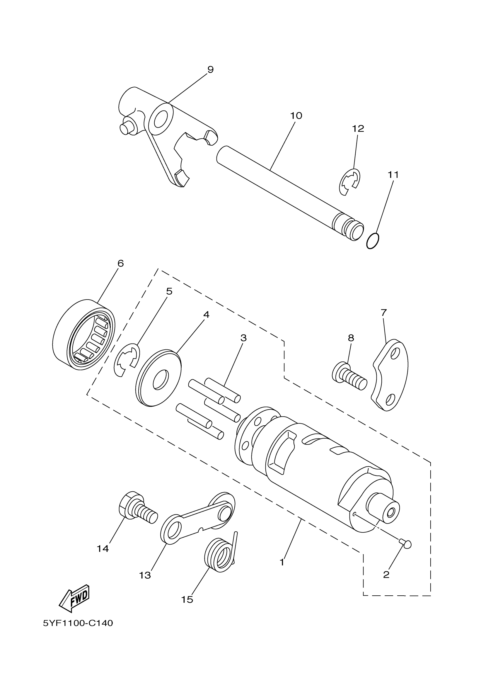 Yamaha YFM50RXGY (RAPTOR 50) 5YFD 2008 SHIFT CAM FORK Diagram