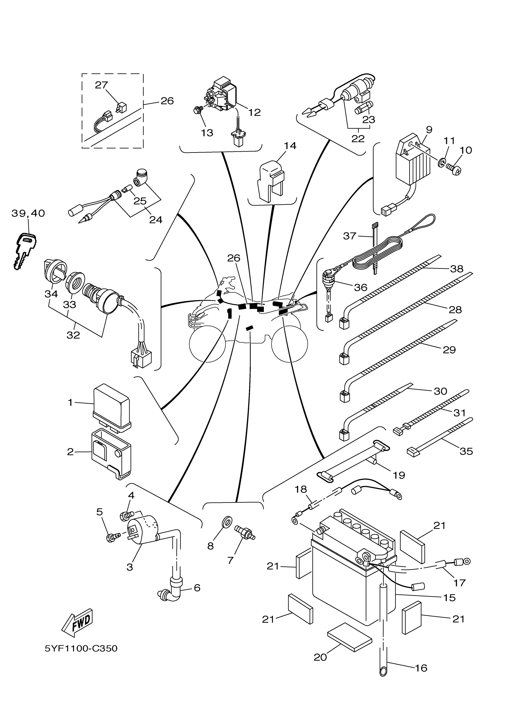Yamaha YFM50RXL (RAPTOR 50) 5YFD0 2008 ELECTRICAL 1 Diagram