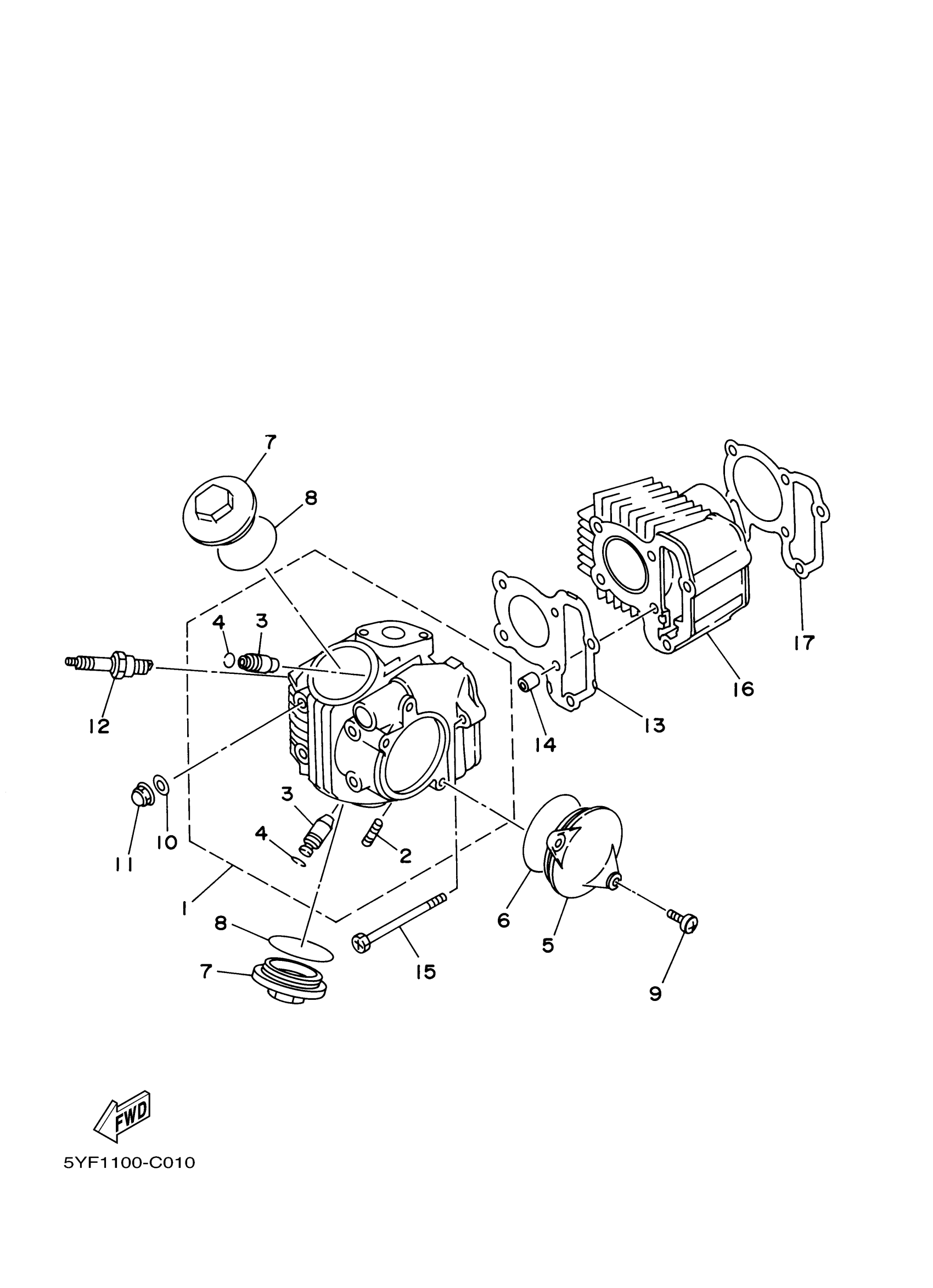 Yamaha YFM50S (RAPTOR 50) 5YF1 2004 CYLINDER Diagram