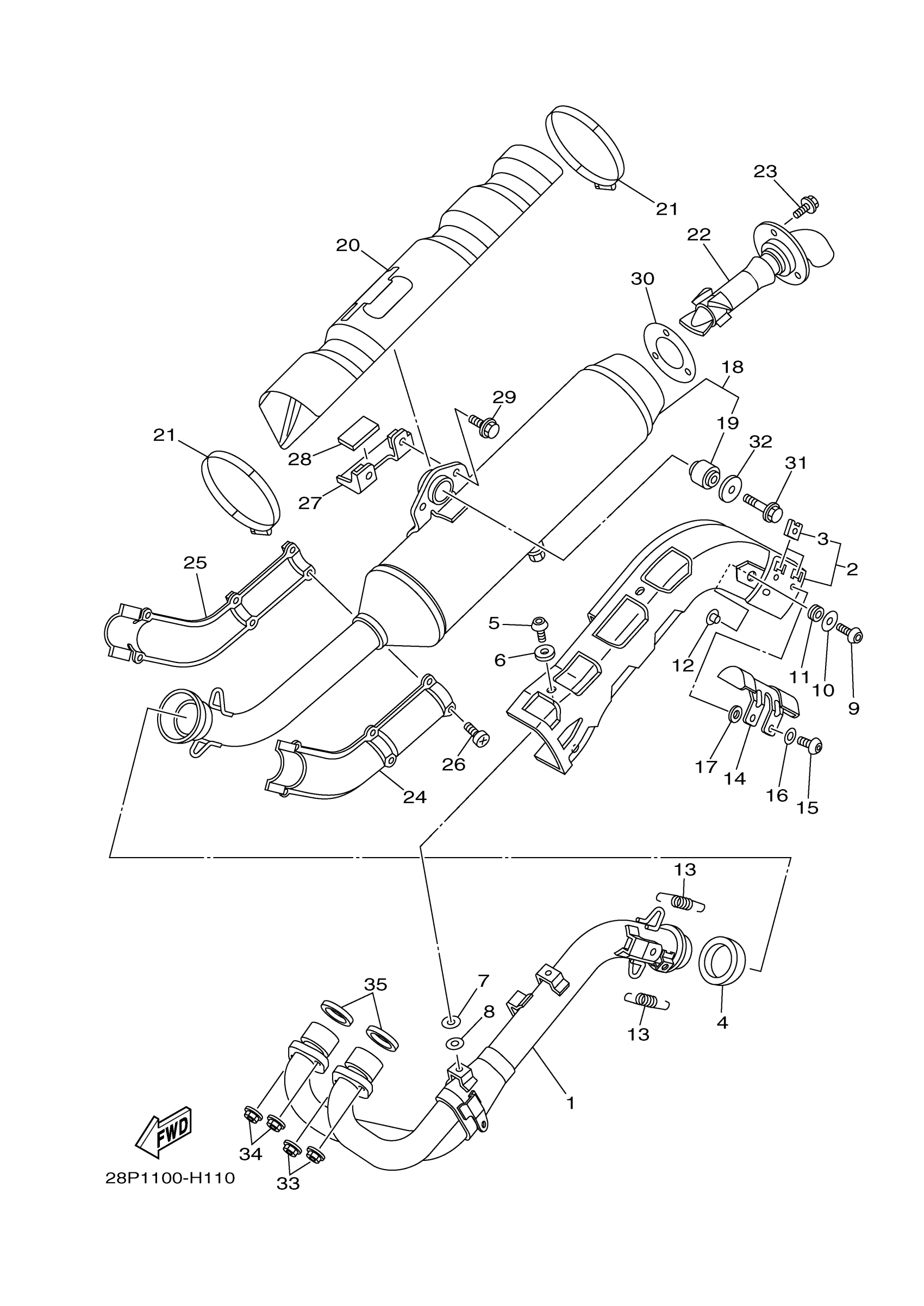 Yamaha YFM5FGAL (GRIZZLY 550 4WD) 28PG 2011 EXHAUST Diagram