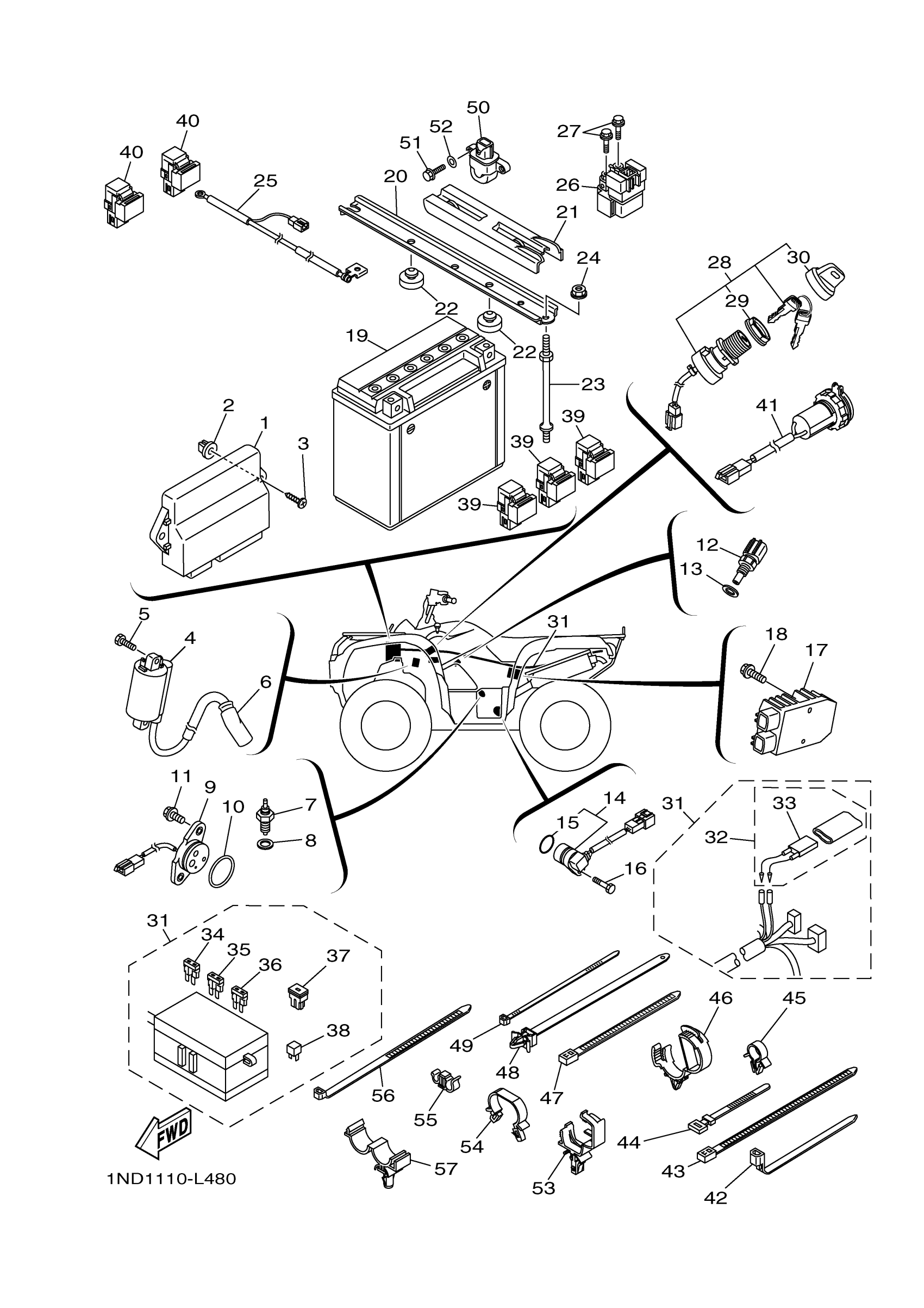 Yamaha YFM5FGBL (GRIZZLY 550 4WD) 1NP10 2012 ELECTRICAL 1 Diagram