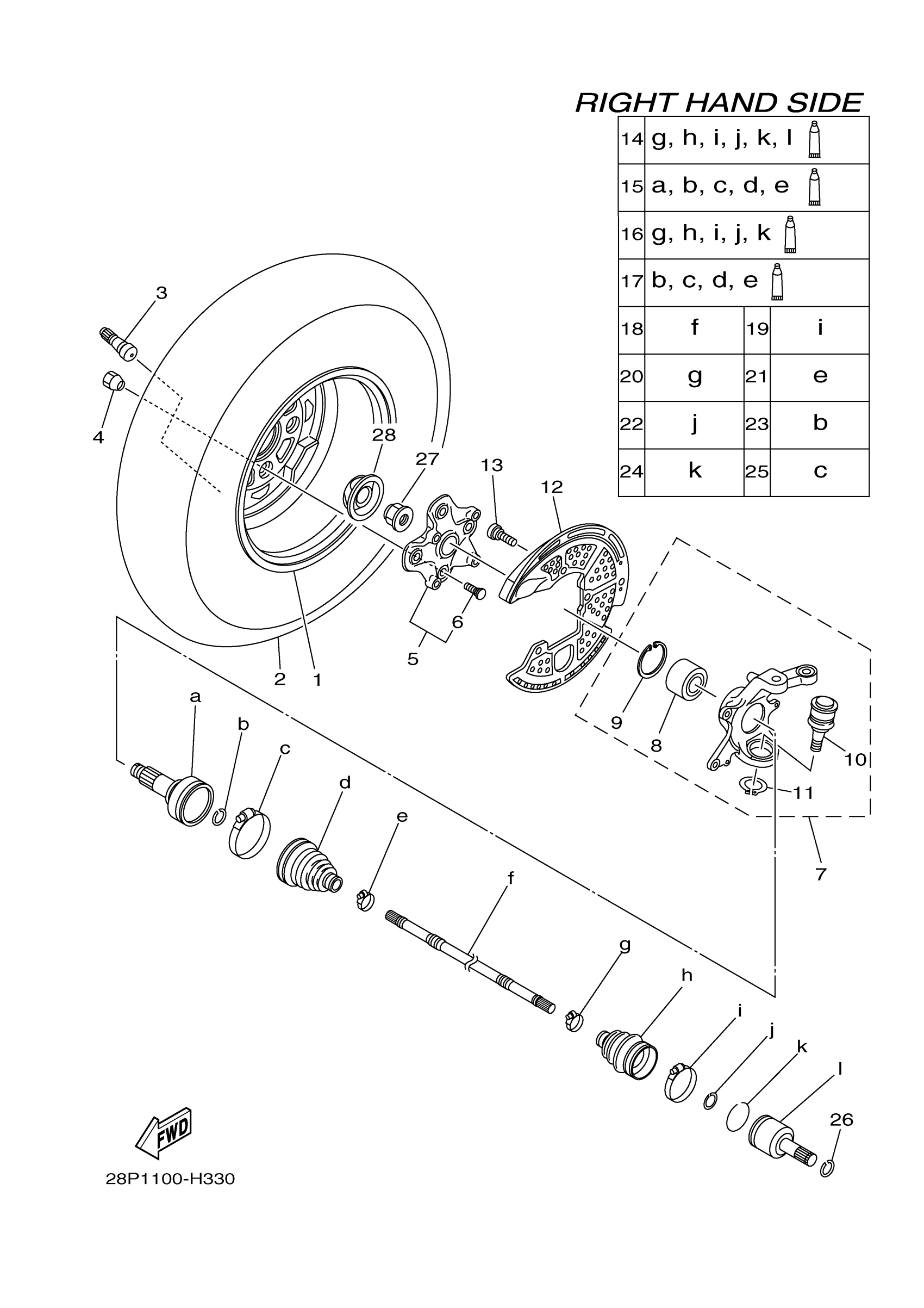 Yamaha YFM5FGHY (GRIZZLY 550 FI 4WD HUNTER) 28P5 2009 FRONT WHEEL 2 Diagram