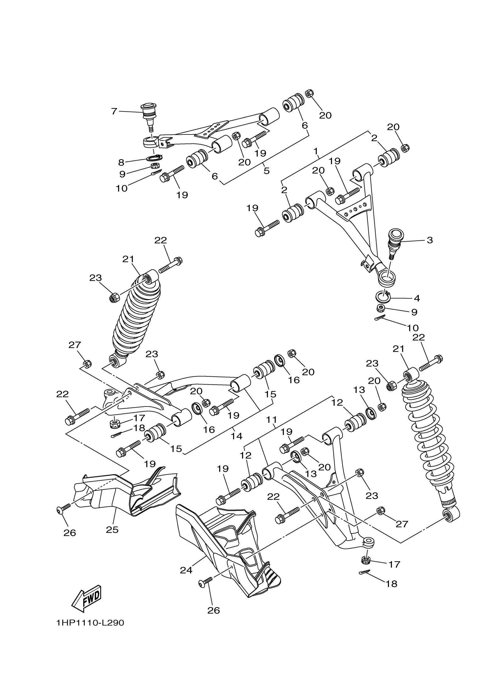 Yamaha YFM5FGPHB (GRIZZLY 550 EPS 4WD HUNTER) 1HS5 2012 FRONT SUSPENSION WHEEL Diagram