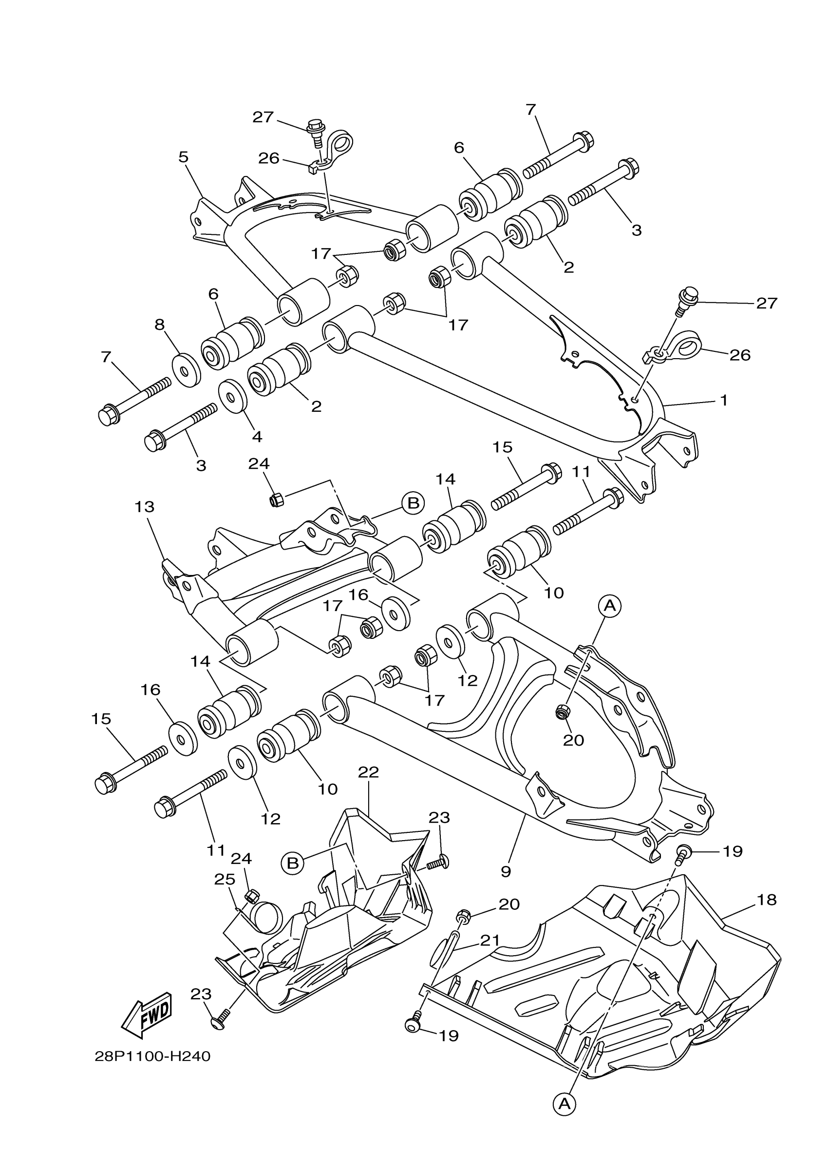 Yamaha YFM5FGPHY (GRIZZLY 550 FI EPS 4WD HUNTER) 34D5 2009 REAR ARM Diagram