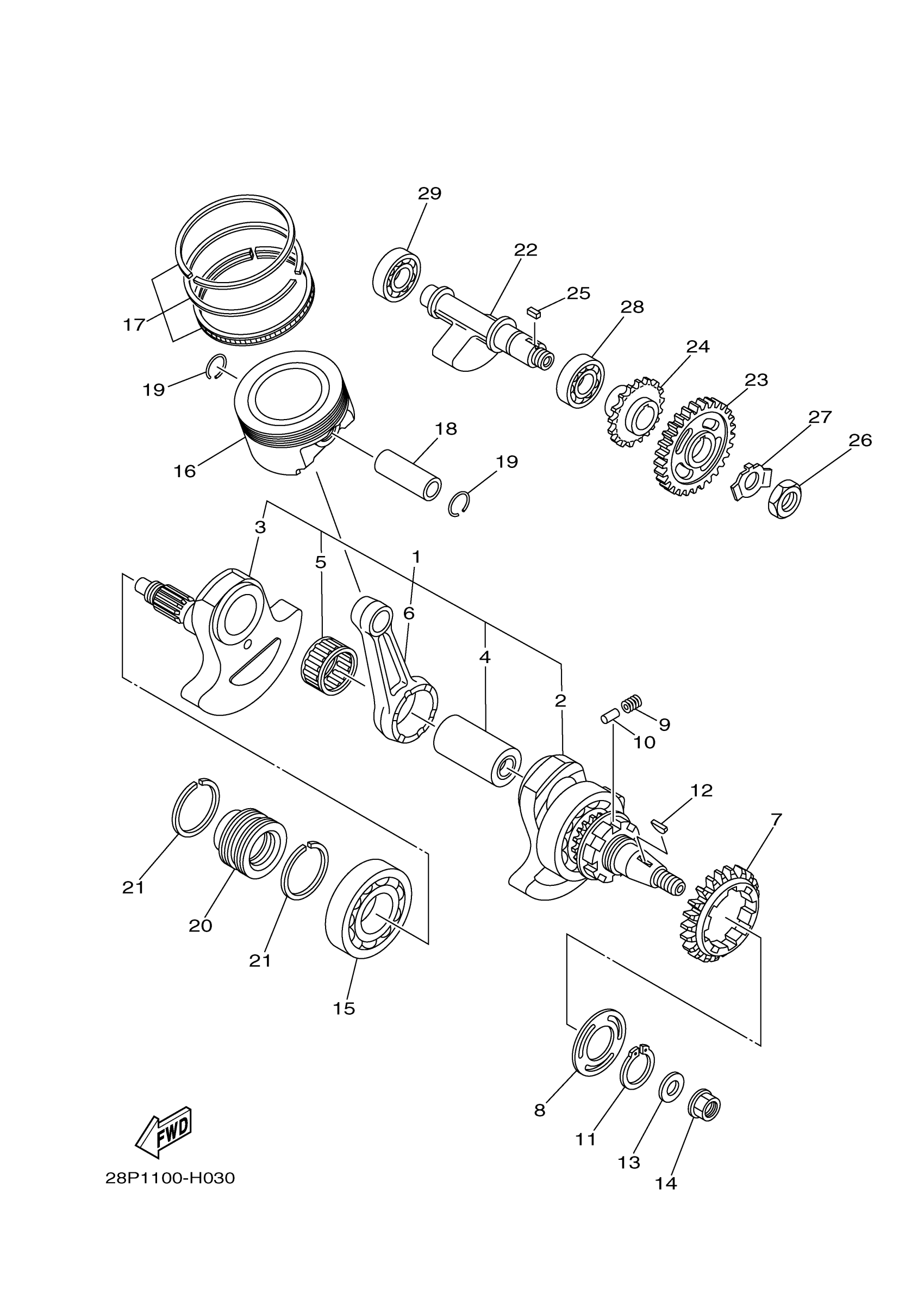 Yamaha YFM5FGZL (GRIZZLY 550 FI 4WD) 28P7 2010 CRANKSHAFT PISTON Diagram