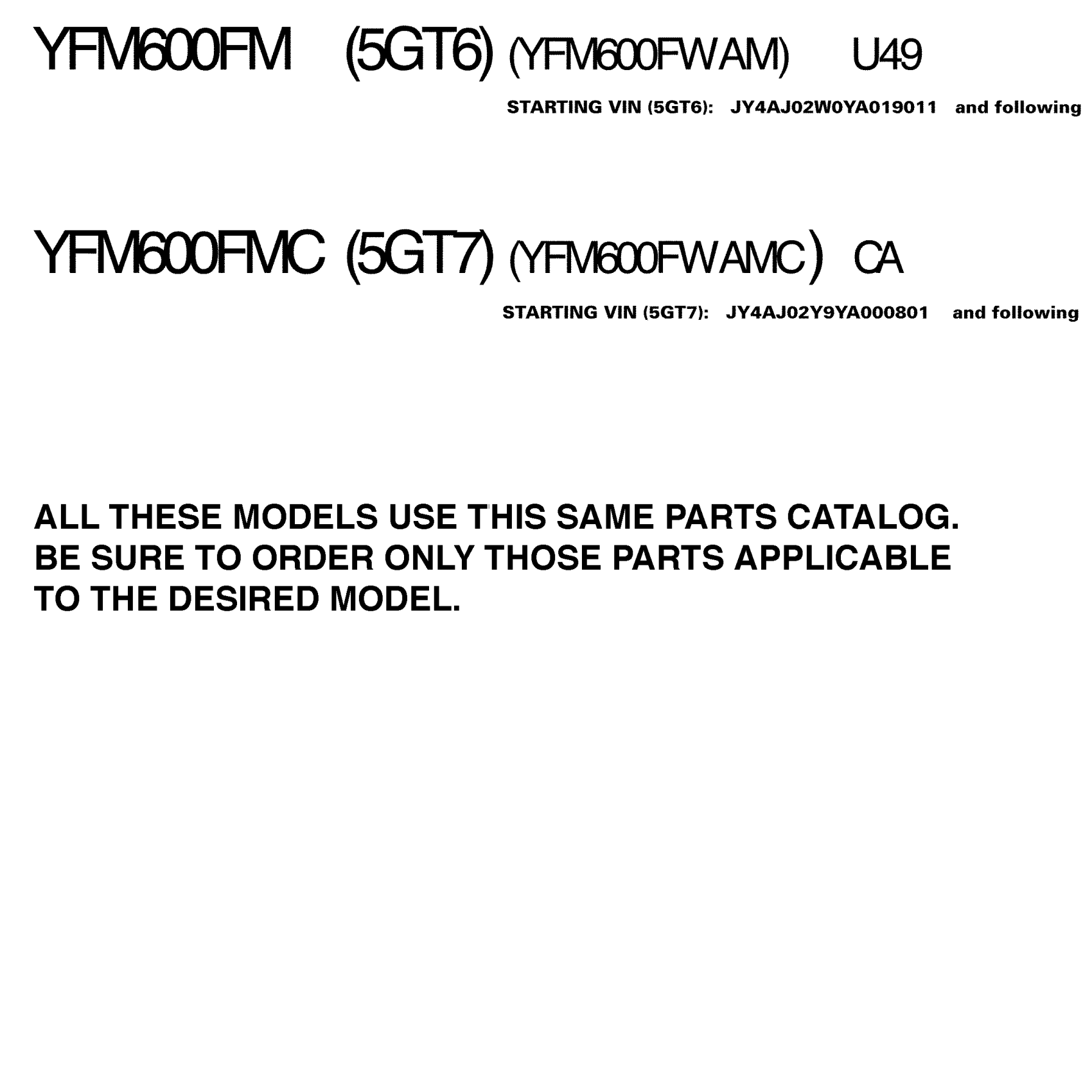 Yamaha YFM600FMC (GRIZZLY) 5GT7 2000 ~MODELS IN THIS CATALOG Diagram