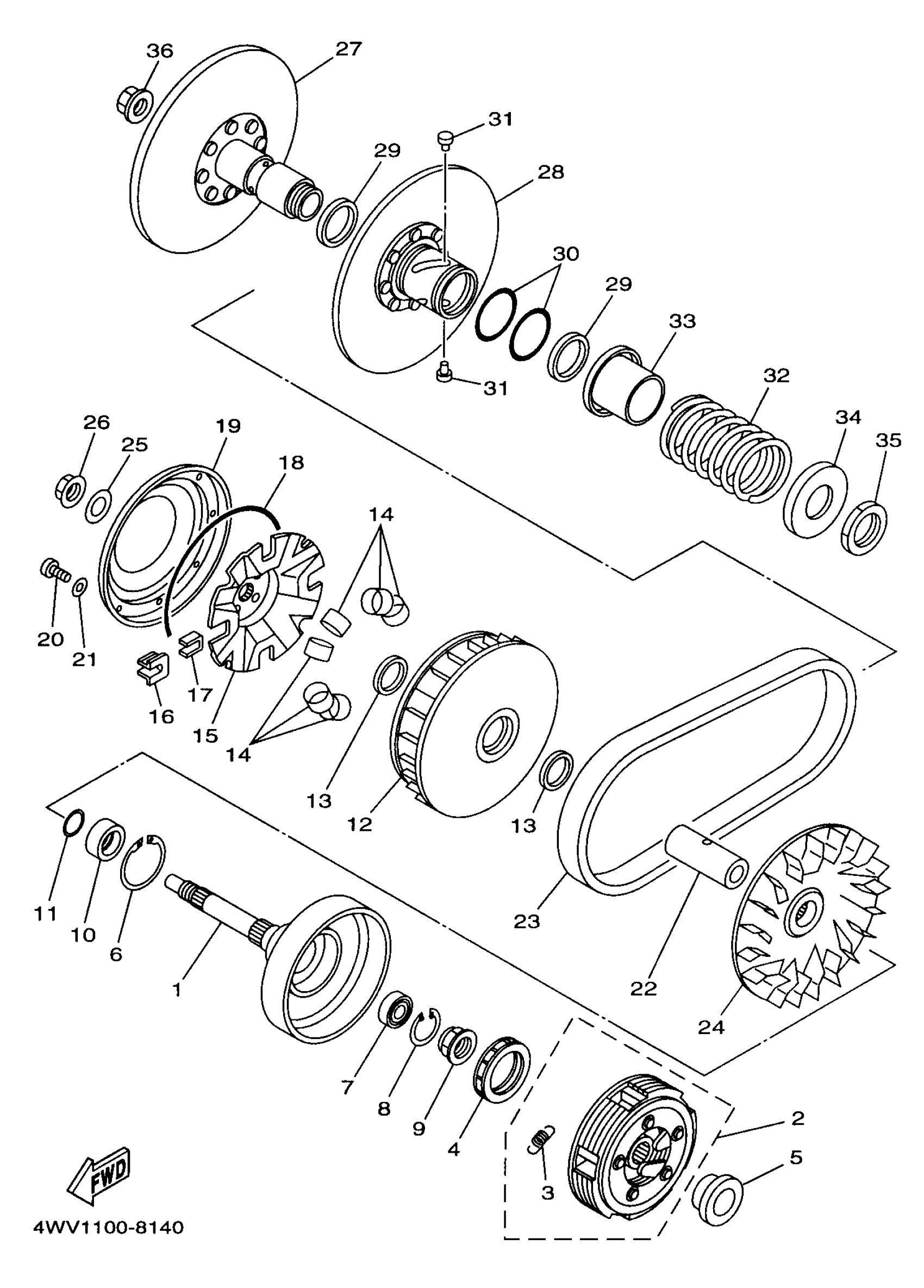 Yamaha YFM600FWAKC (GRIZZLY) 4WV11 1998 CLUTCH Diagram