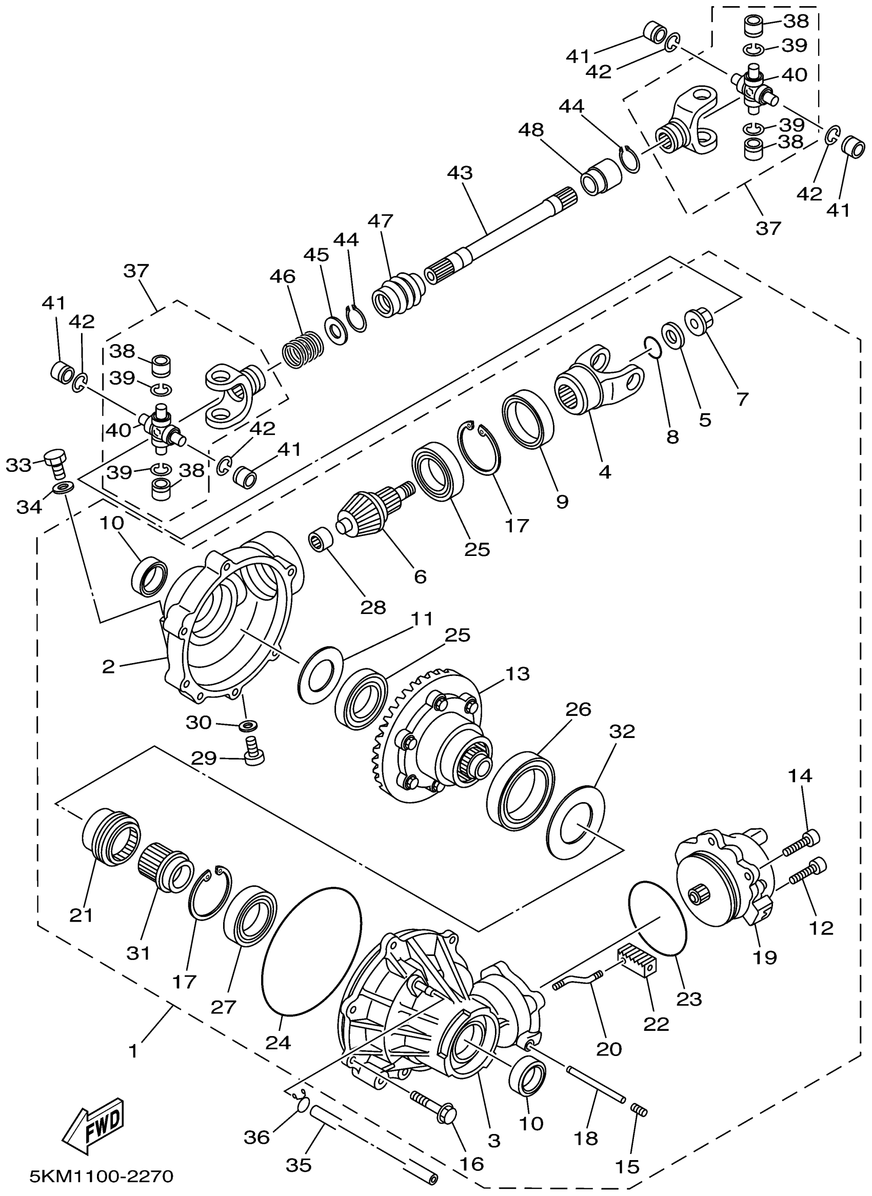Yamaha YFM660FHP (GRIZZLY HUNTER EDITION) 5KM5 2002 FRONT DIFFERENTIAL Diagram