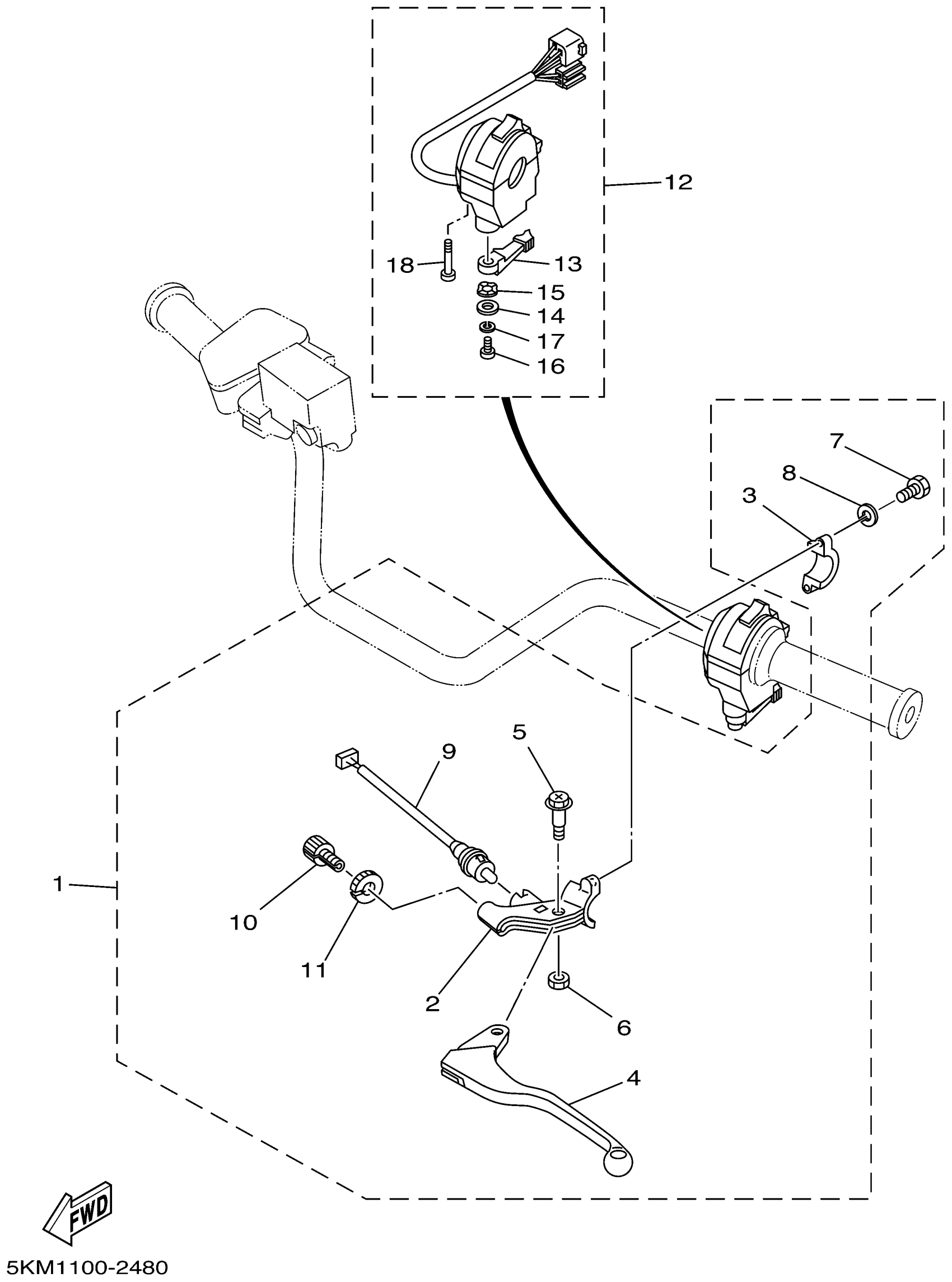 Yamaha YFM660FHP (GRIZZLY HUNTER EDITION) 5KM5 2002 HANDLE SWITCH LEVER Diagram