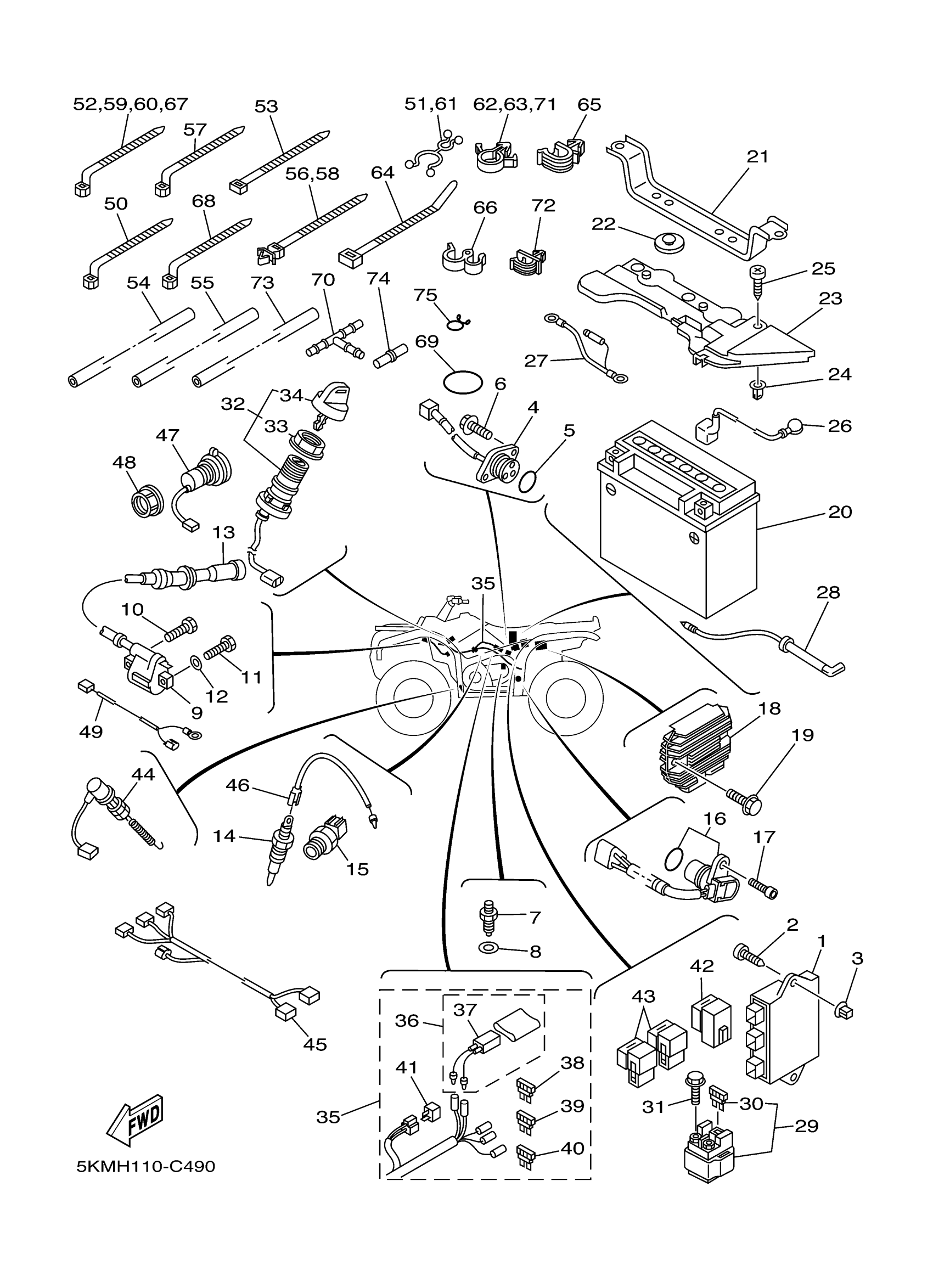 Yamaha YFM660FLES (GRIZZLY 660 AUTO 4X4 WETLANDYFM660FLES) 5KMP 2004 ELECTRICAL 1 Diagram