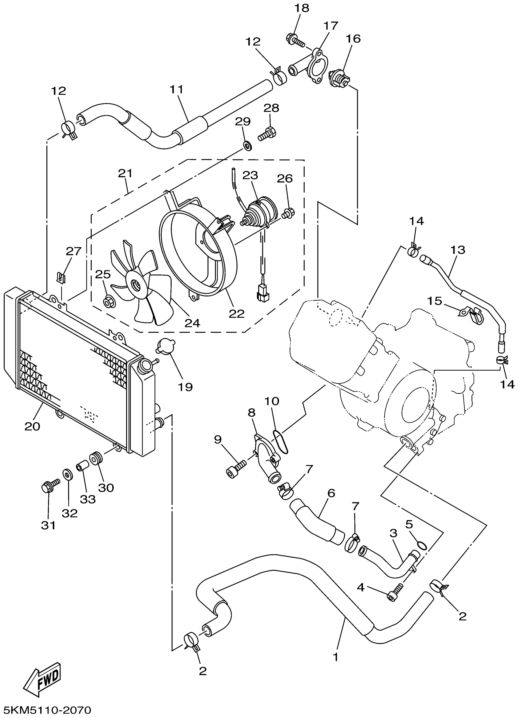 Yamaha YFM660FP (GRIZZLY 660) 5KM1 2002 RADIATOR HOSE Diagram