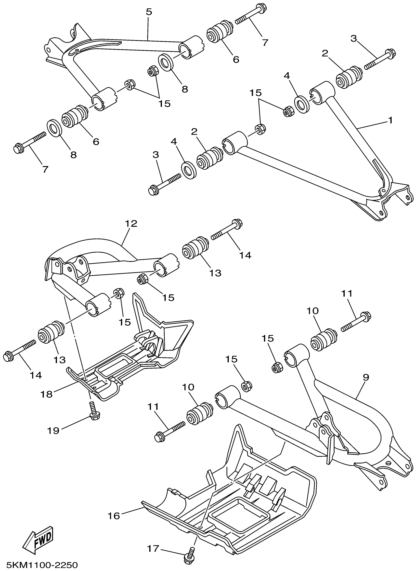 Yamaha YFM660FP (GRIZZLY 660) 5KM1 2002 REAR ARM Diagram