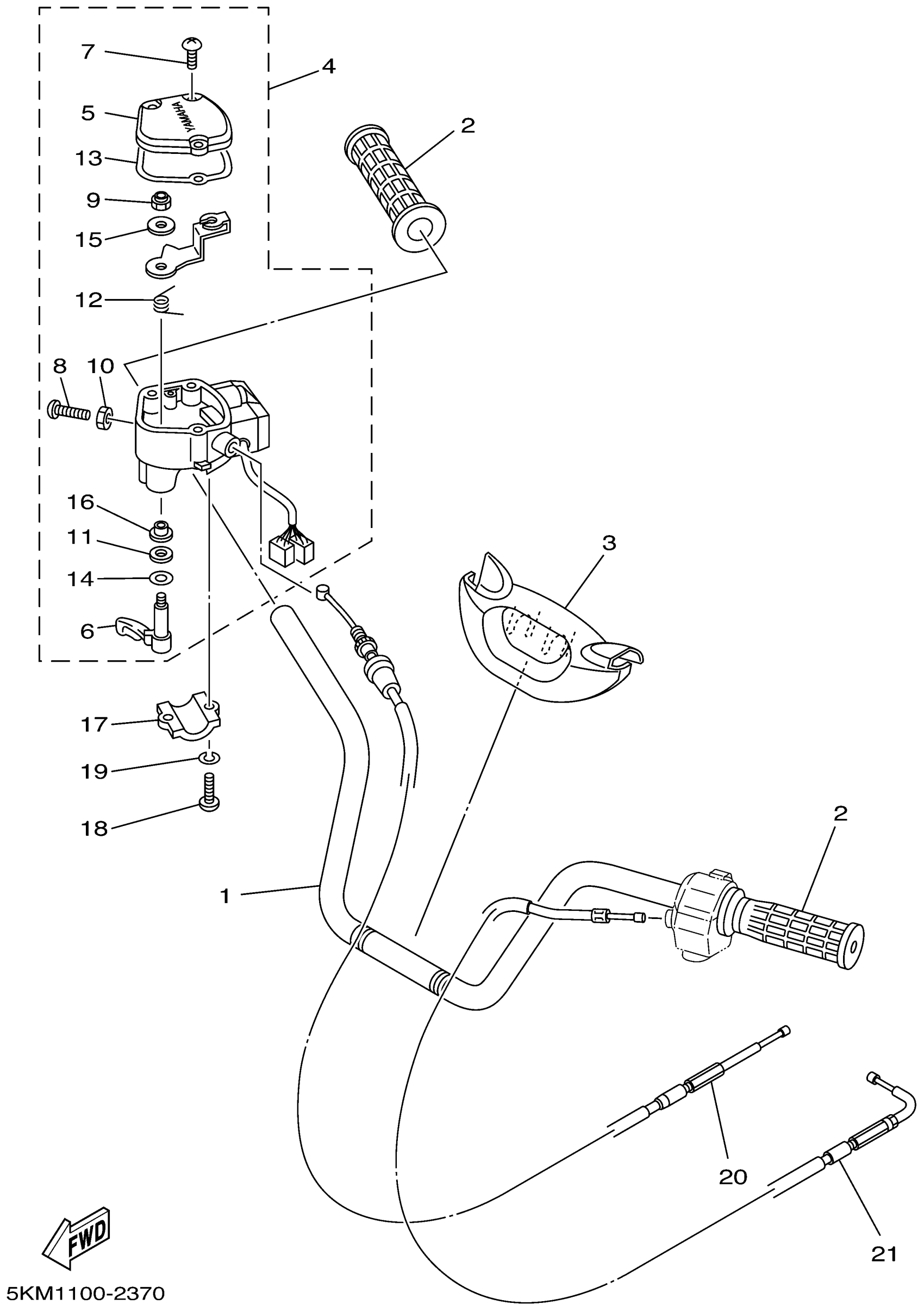 Yamaha YFM660FP (GRIZZLY 660) 5KM1 2002 STEERING HANDLE CABLE Diagram