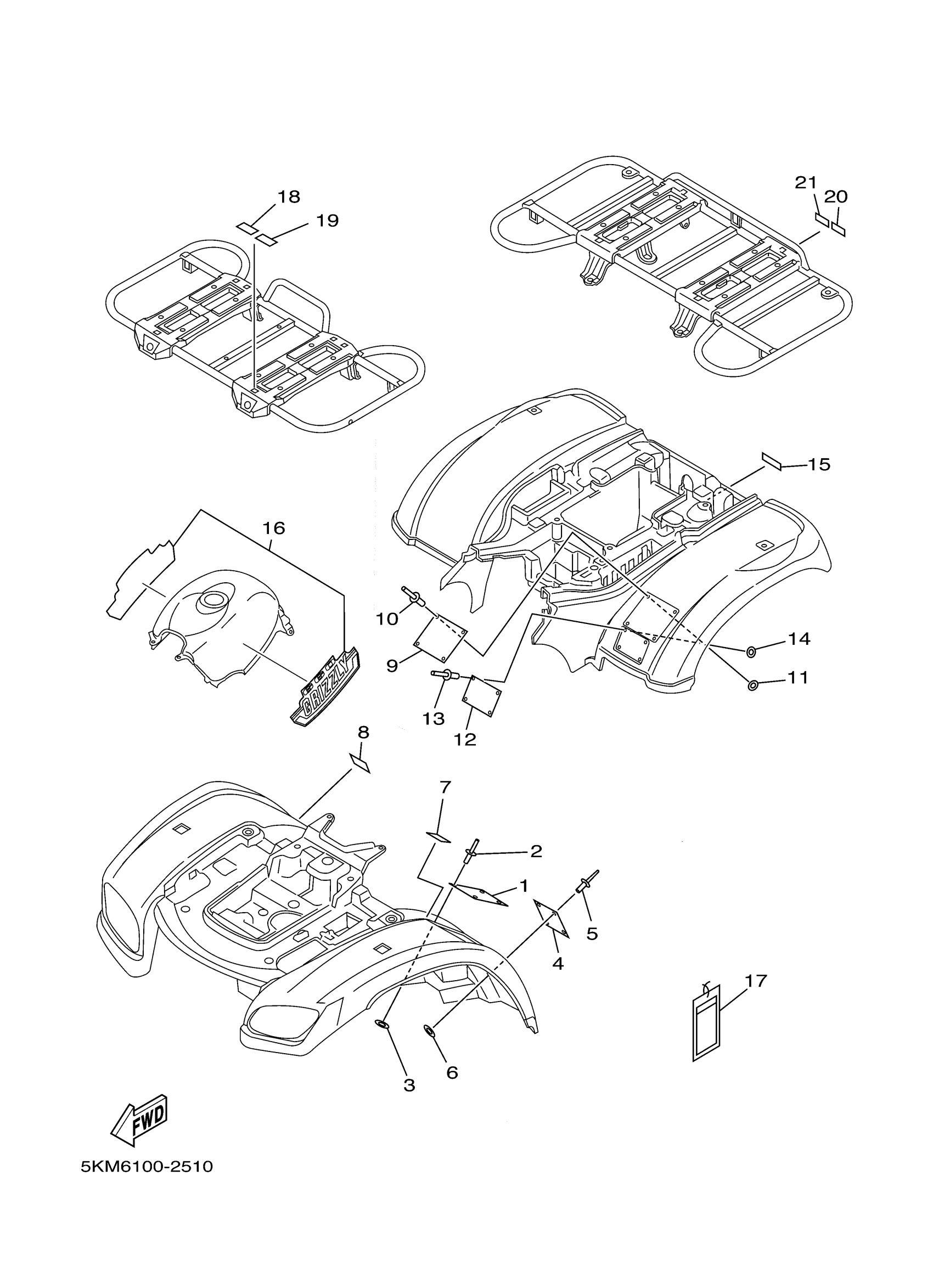 Yamaha YFM660FPS (GRIZZLY 600 METALLIC SILVER) 5KM6 2002 EMBLEM LABEL 1 Diagram