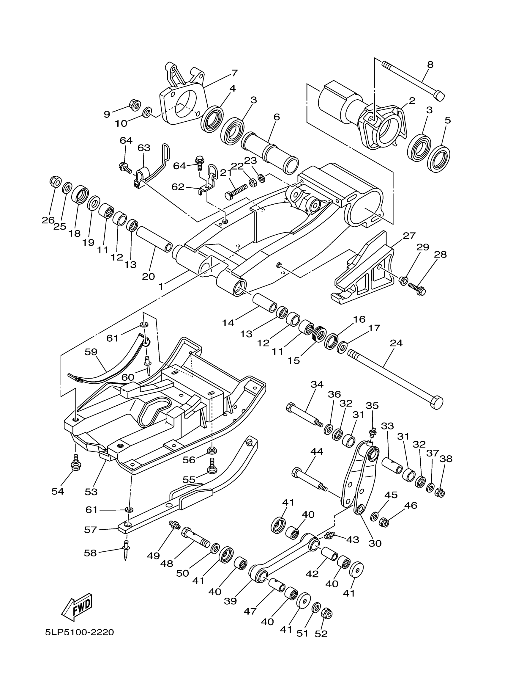 Yamaha YFM660RP (660R RAPTOR) 5LP5 2002 REAR ARM Diagram