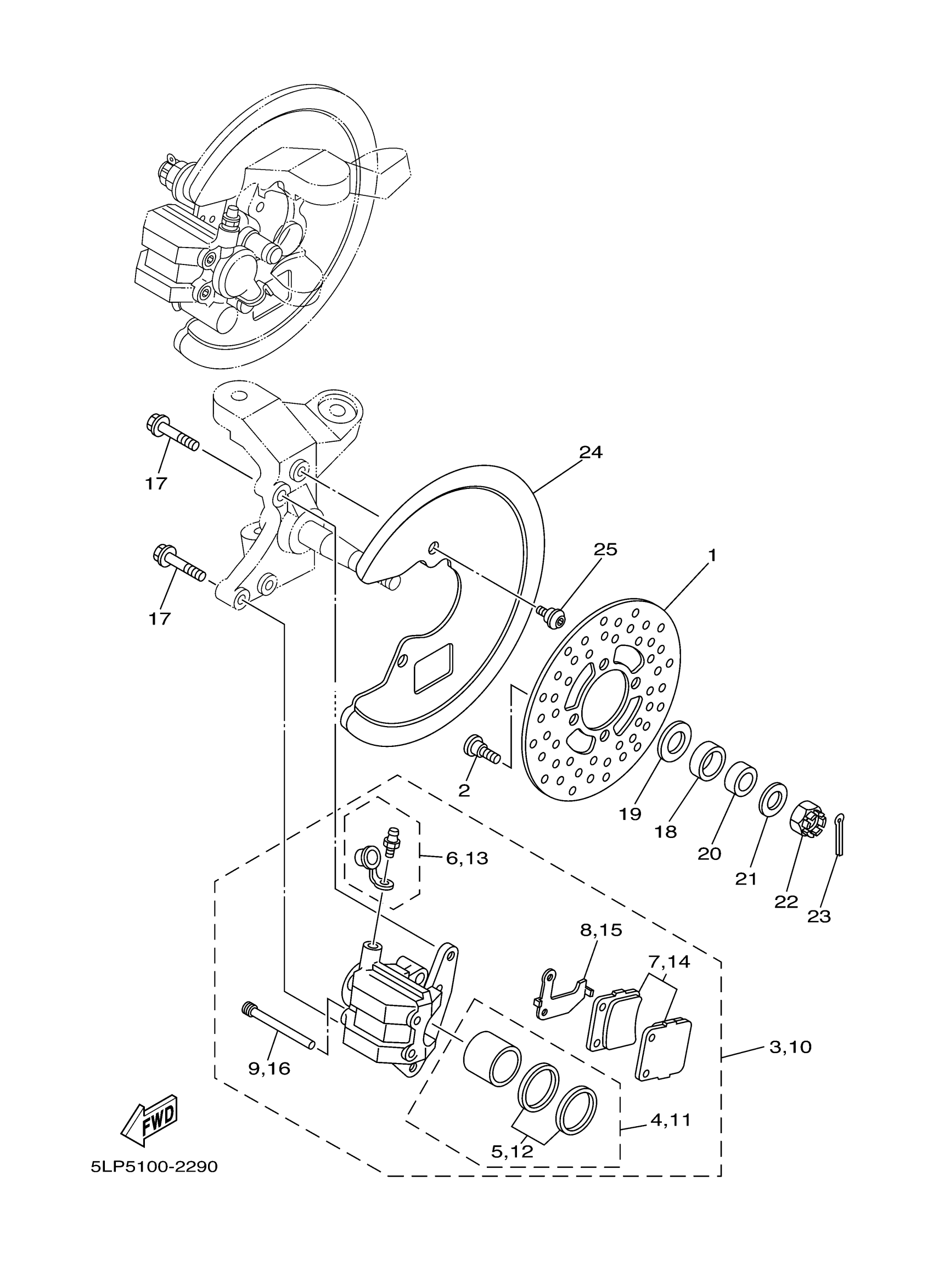 Yamaha YFM660RR (RAPTOR 660R) 5LP9 2003 FRONT BRAKE CALIPER Diagram