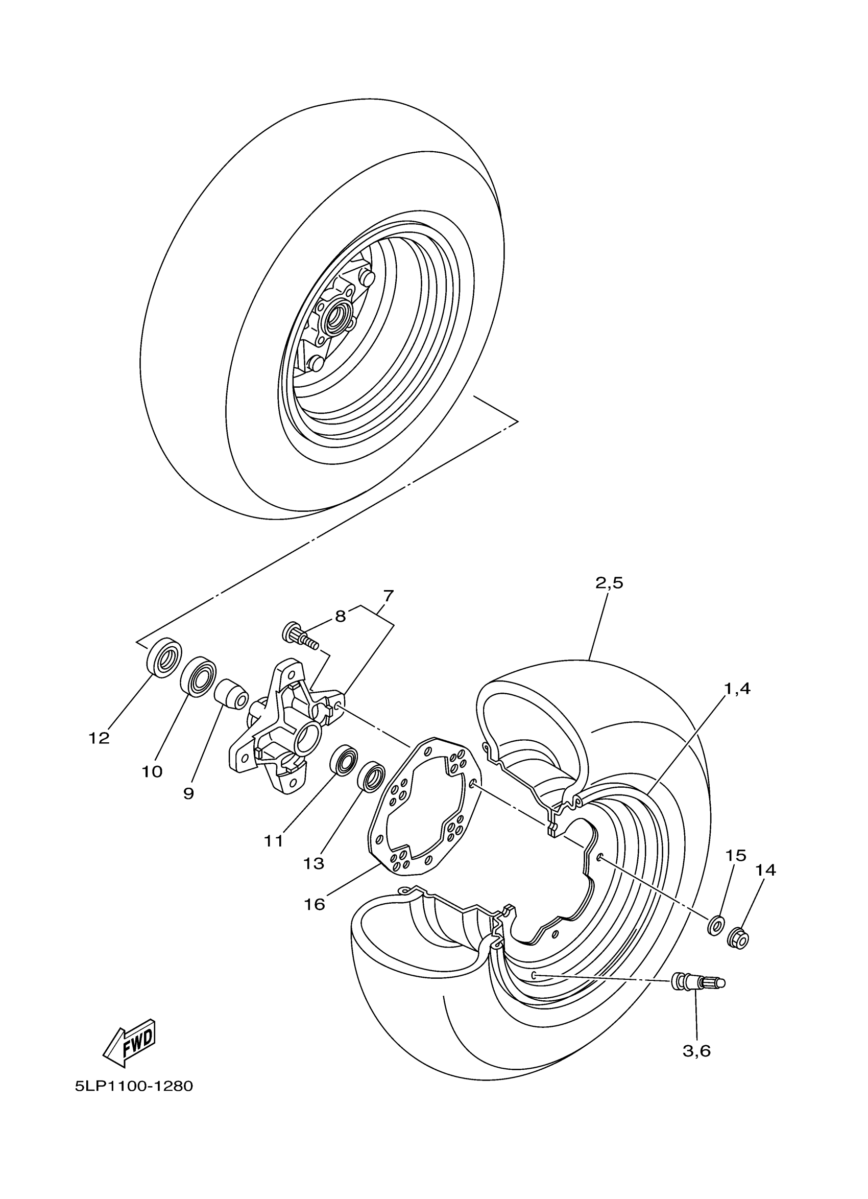 Yamaha YFM660RR (RAPTOR 660R) 5LP9 2003 FRONT WHEEL Diagram
