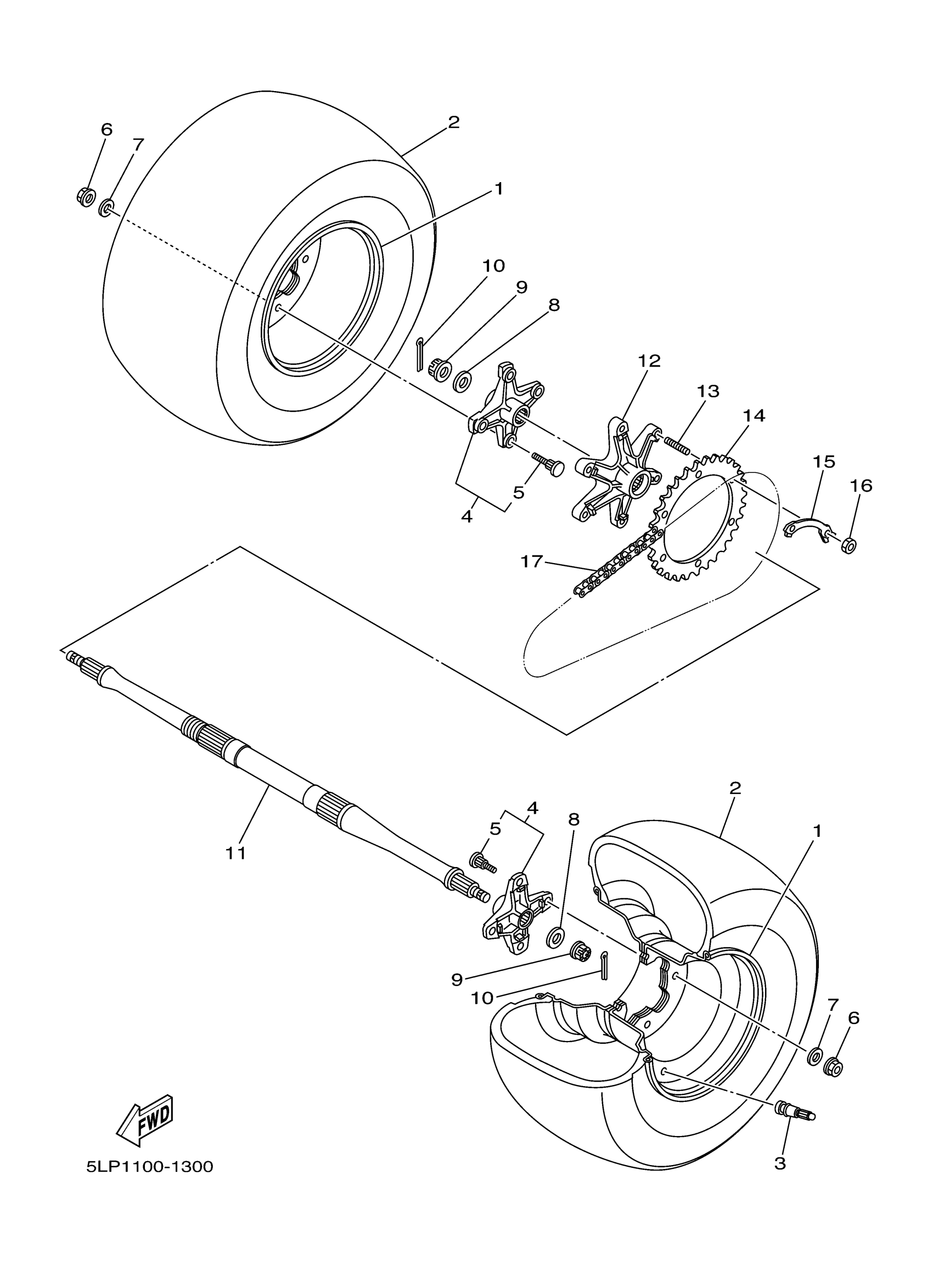 Yamaha YFM660RT (660R RAPTOR) 5LPP 2005 REAR WHEEL Diagram