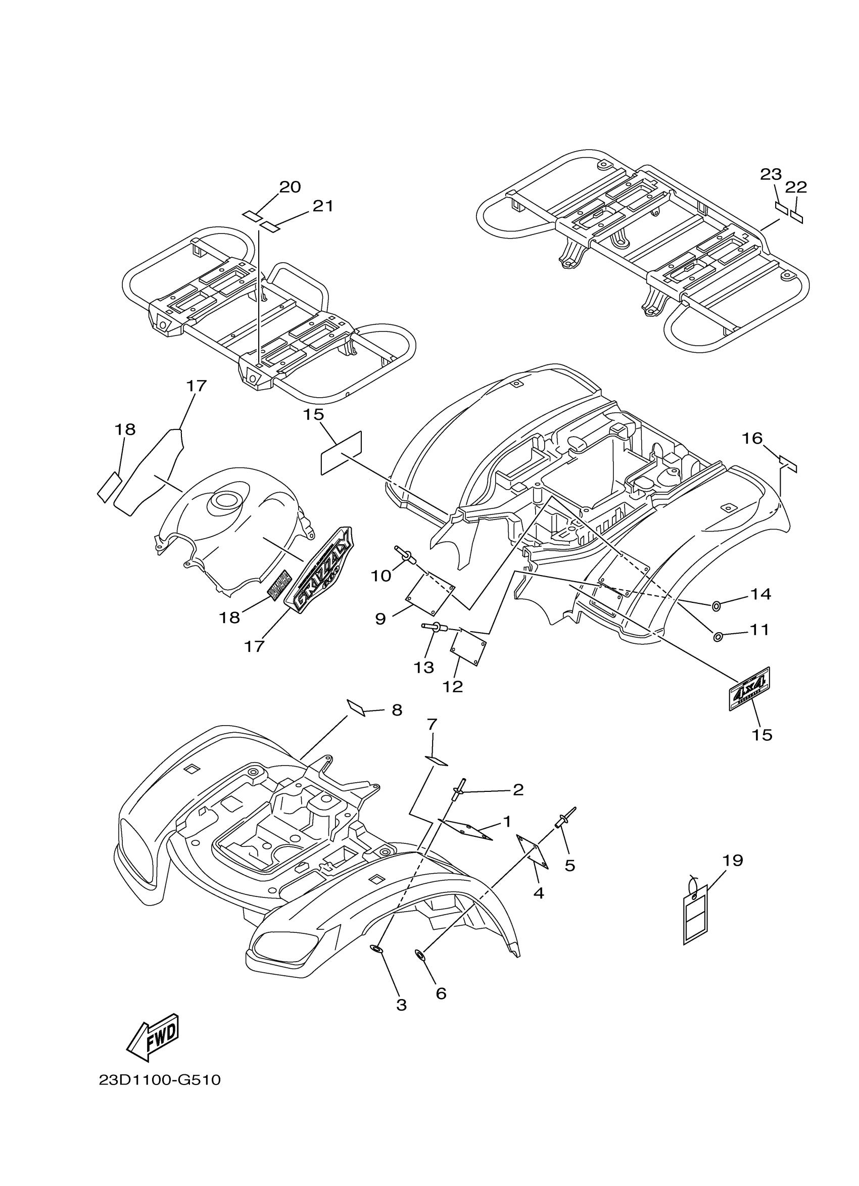 Yamaha YFM66FGHX (GRIZZLY 660 HUNTER) 23D5 2008 EMBLEM LABEL 1 Diagram
