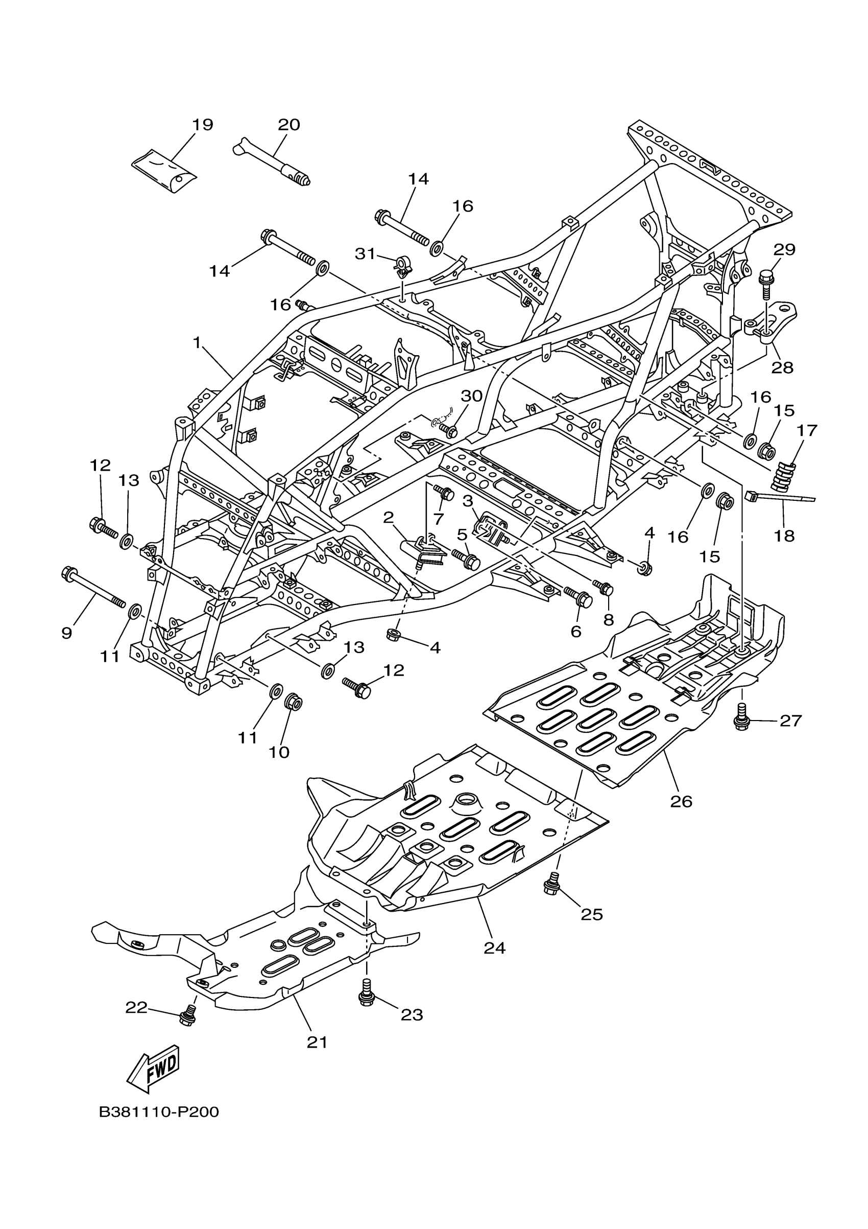 Yamaha YFM700DFL (GRIZZLY 700 4WD) 2ES51 2015 FRAME Diagram