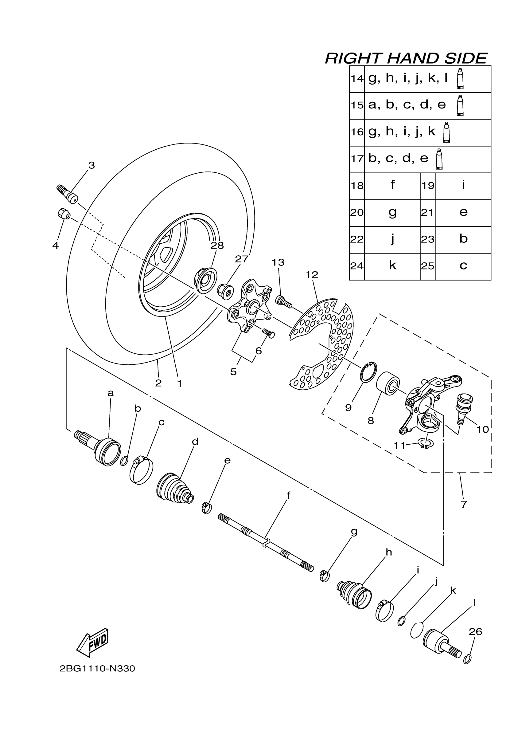 Yamaha YFM700PFR (GRIZZLY 700 EPS 4WD) B3812 2015 FRONT WHEEL 2 Diagram