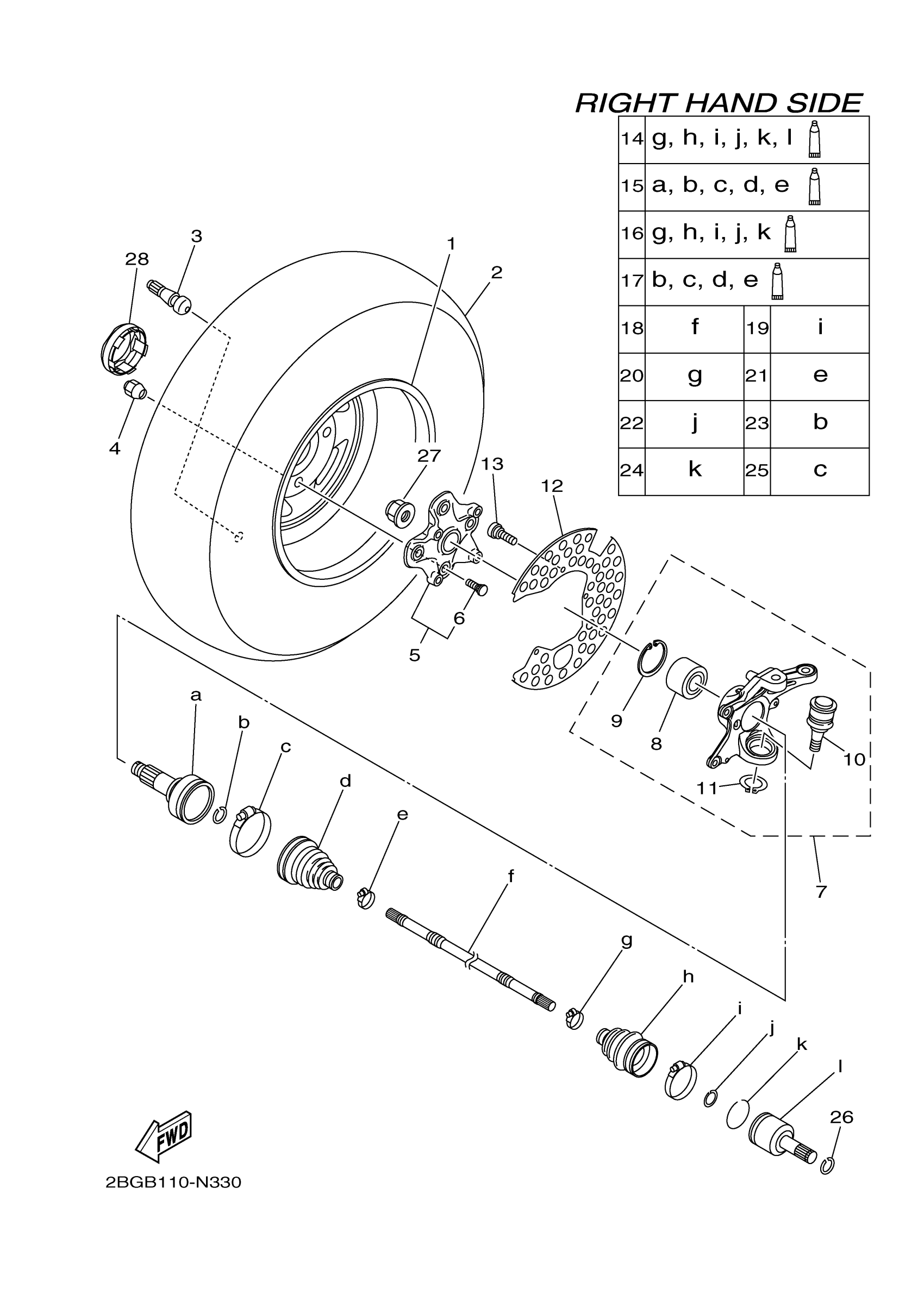 Yamaha YFM700PSEB (GRIZZLY 700 FI EPS SE) 2BGB 2014 FRONT WHEEL 2 Diagram