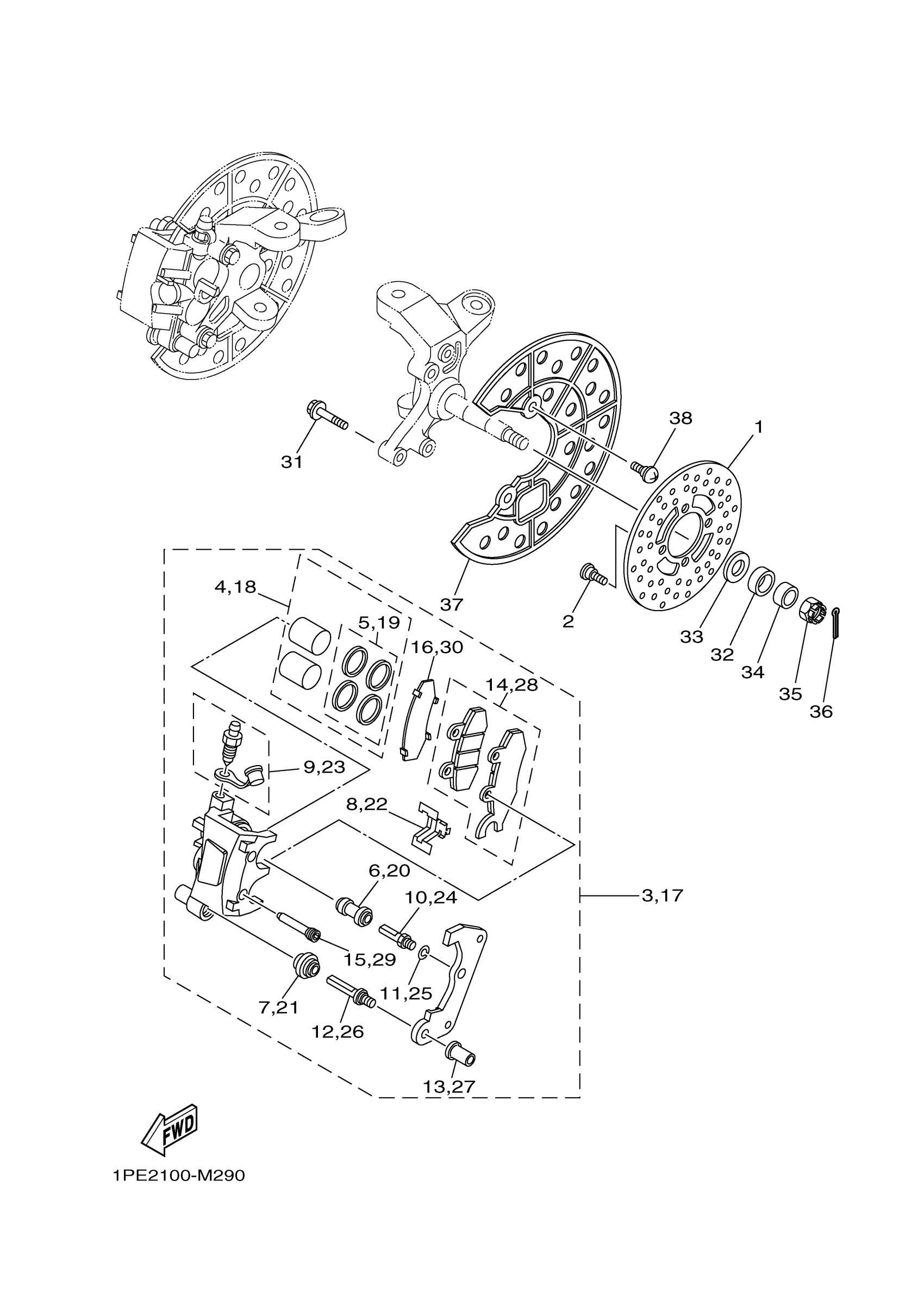 Yamaha YFM700RSFL (RAPTOR 700R SE) B4611 2015 FRONT BRAKE CALIPER Diagram