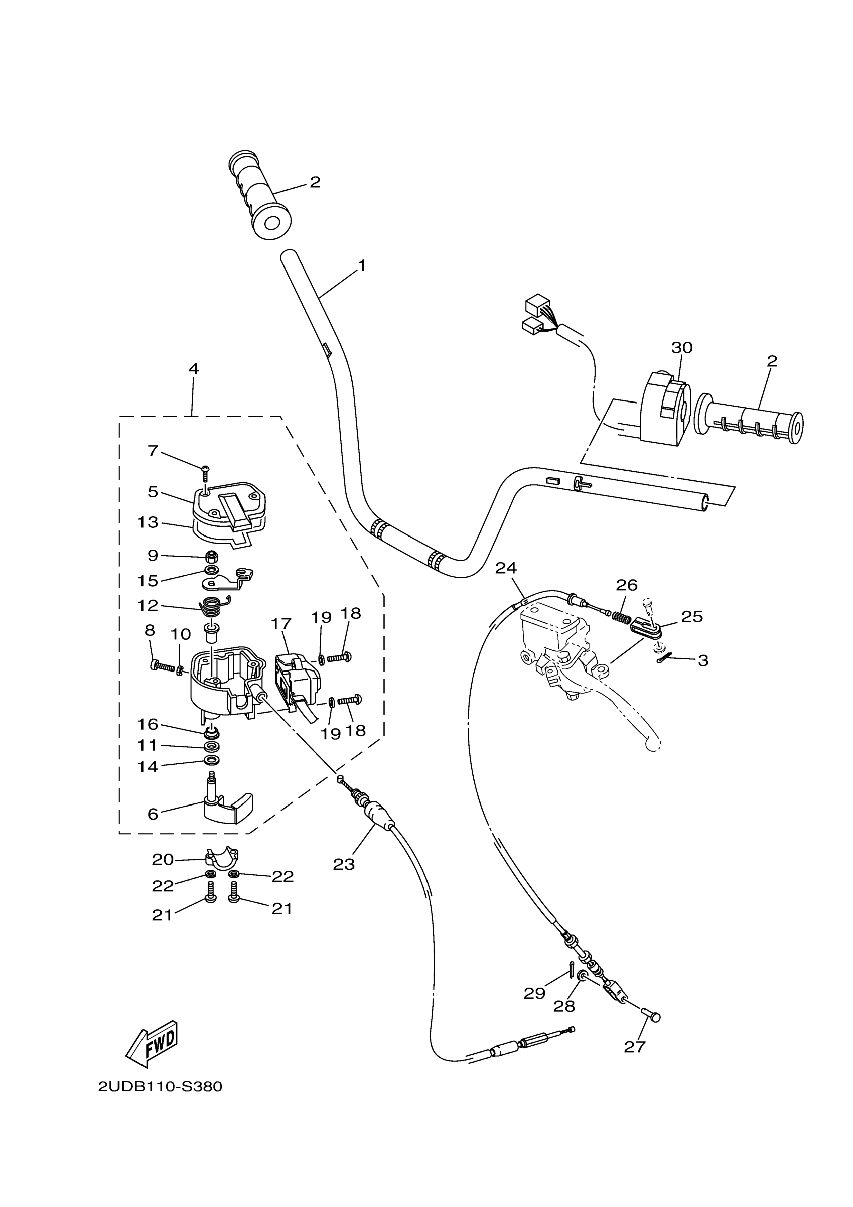 Yamaha YFM70GPAJW (GRIZZLY EPS) B1AB1 2018 STEERING HANDLE CABLE Diagram