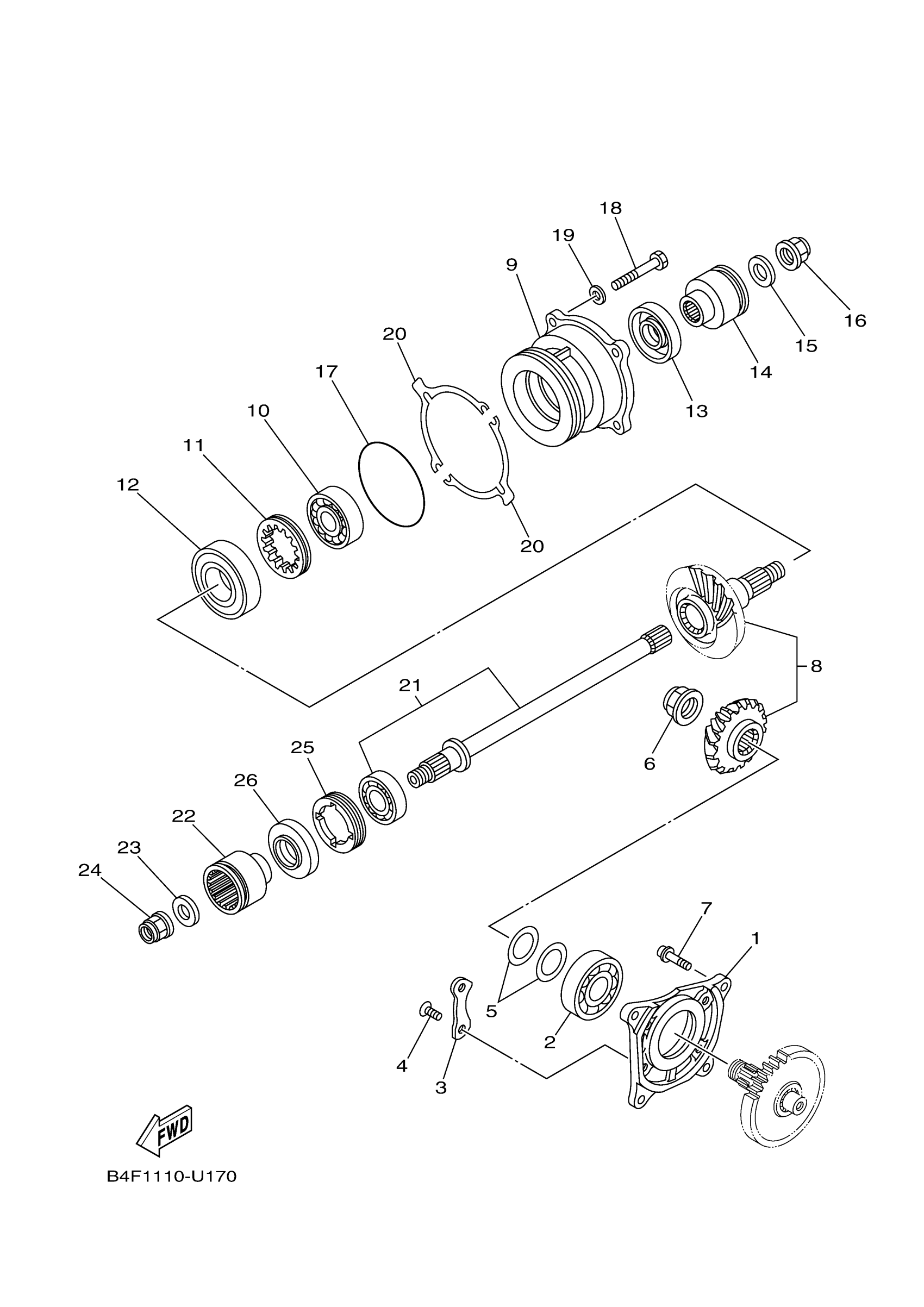 Yamaha YFM70GPAKW (GRIZZLY EPS 4WD) B4FD1 2019 MIDDLE DRIVE GEAR Diagram