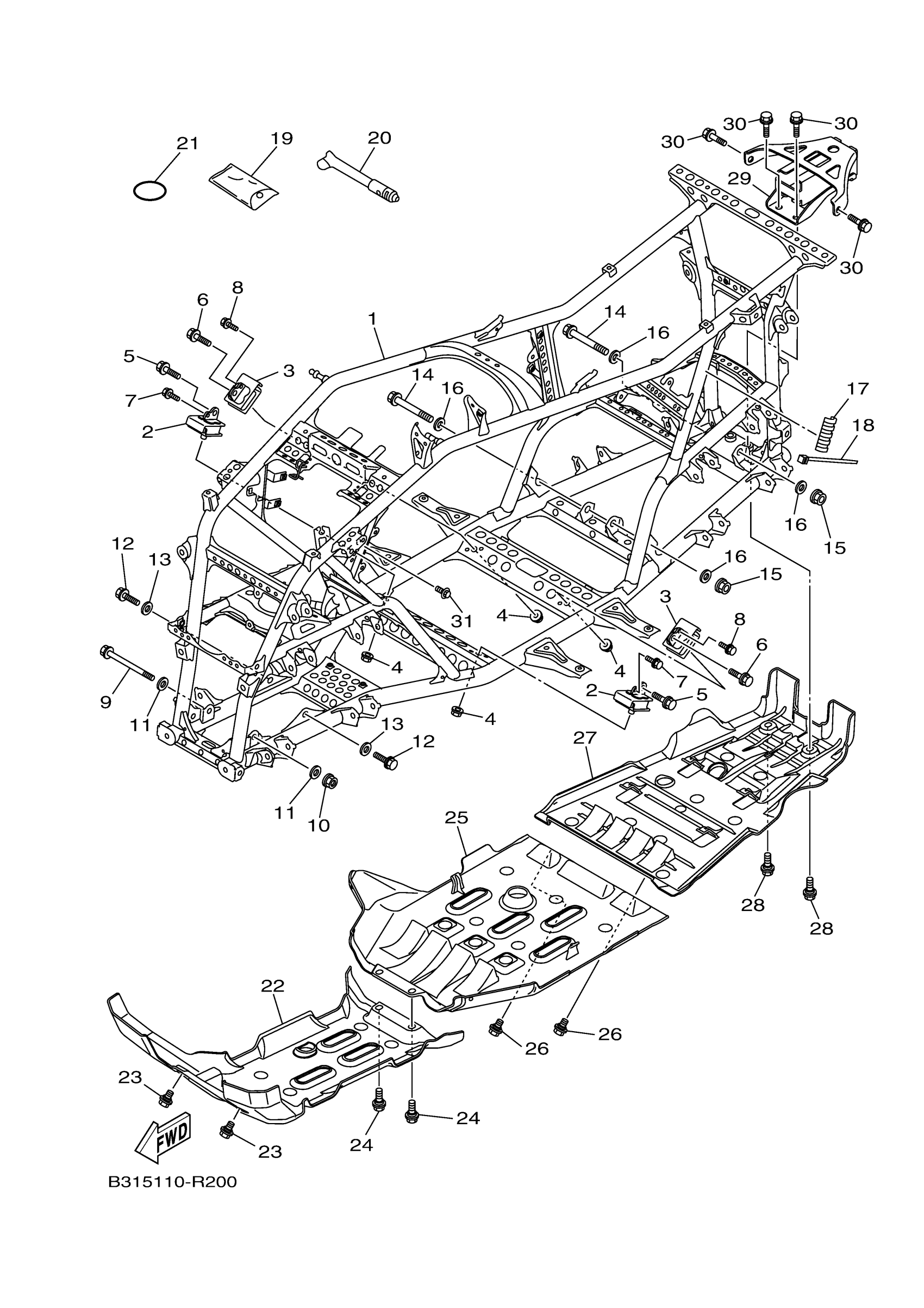 Yamaha YFM70GPLHR (GRIZZLY EPS 4WD LE) 2UDT 2017 FRAME Diagram
