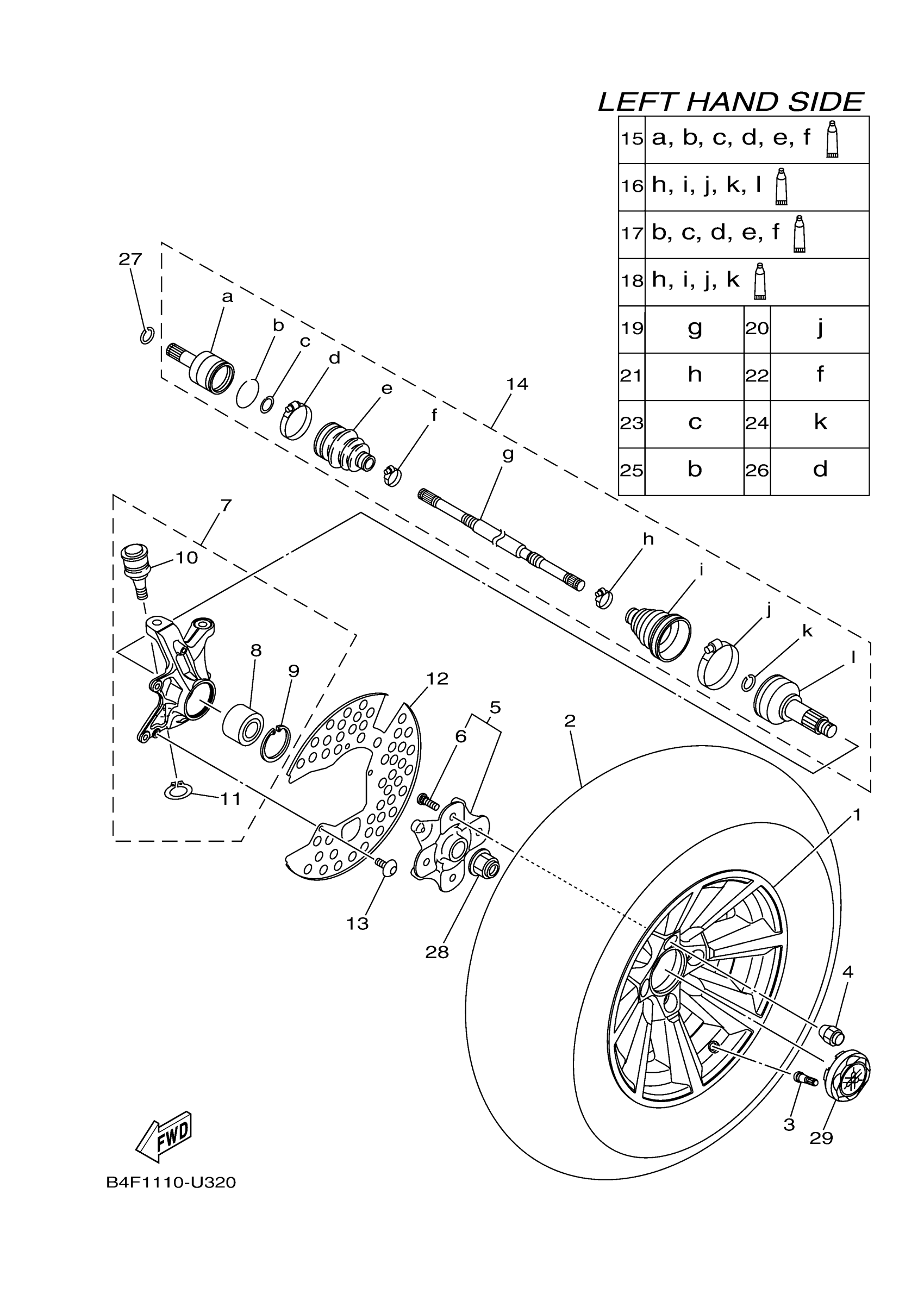 Yamaha YFM70GPSKB (GRIZZLY EPS 4WD SE) B4F5 2019 FRONT WHEEL Diagram
