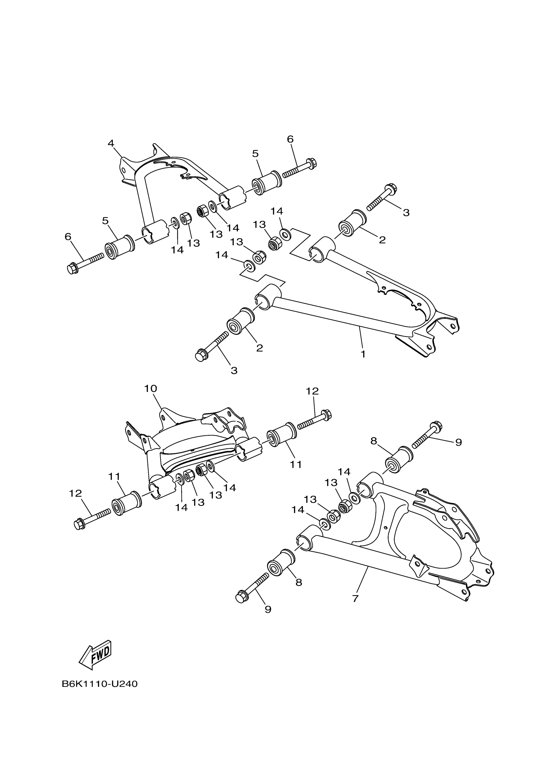 Yamaha YFM70KDHKF (KODIAK 700 4WD HUNTER) B6K4 2019 REAR ARM Diagram