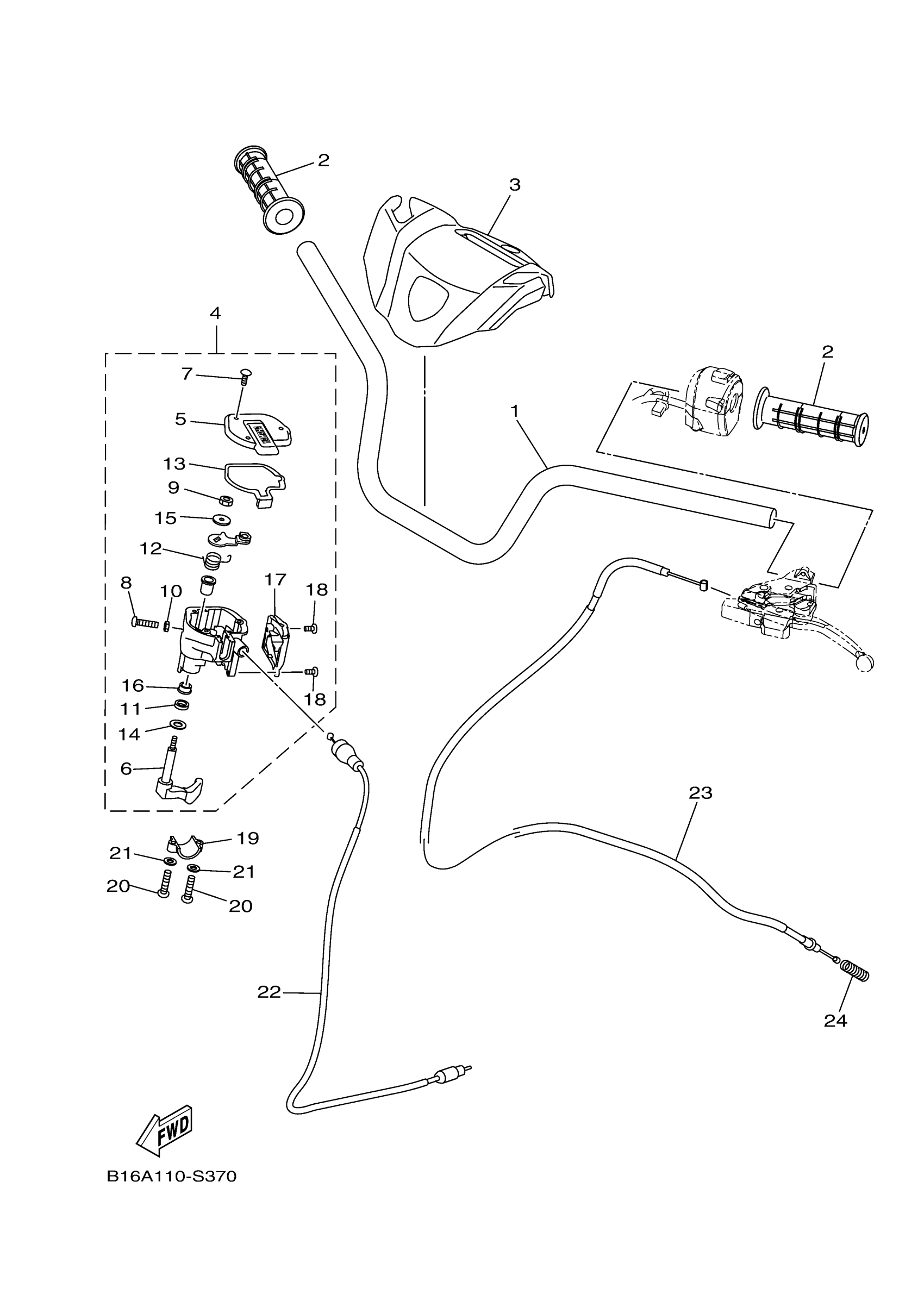 Yamaha YFM70KDXHR (KODIAK 700 4WD) B16A1 2017 STEERING HANDLE CABLE Diagram