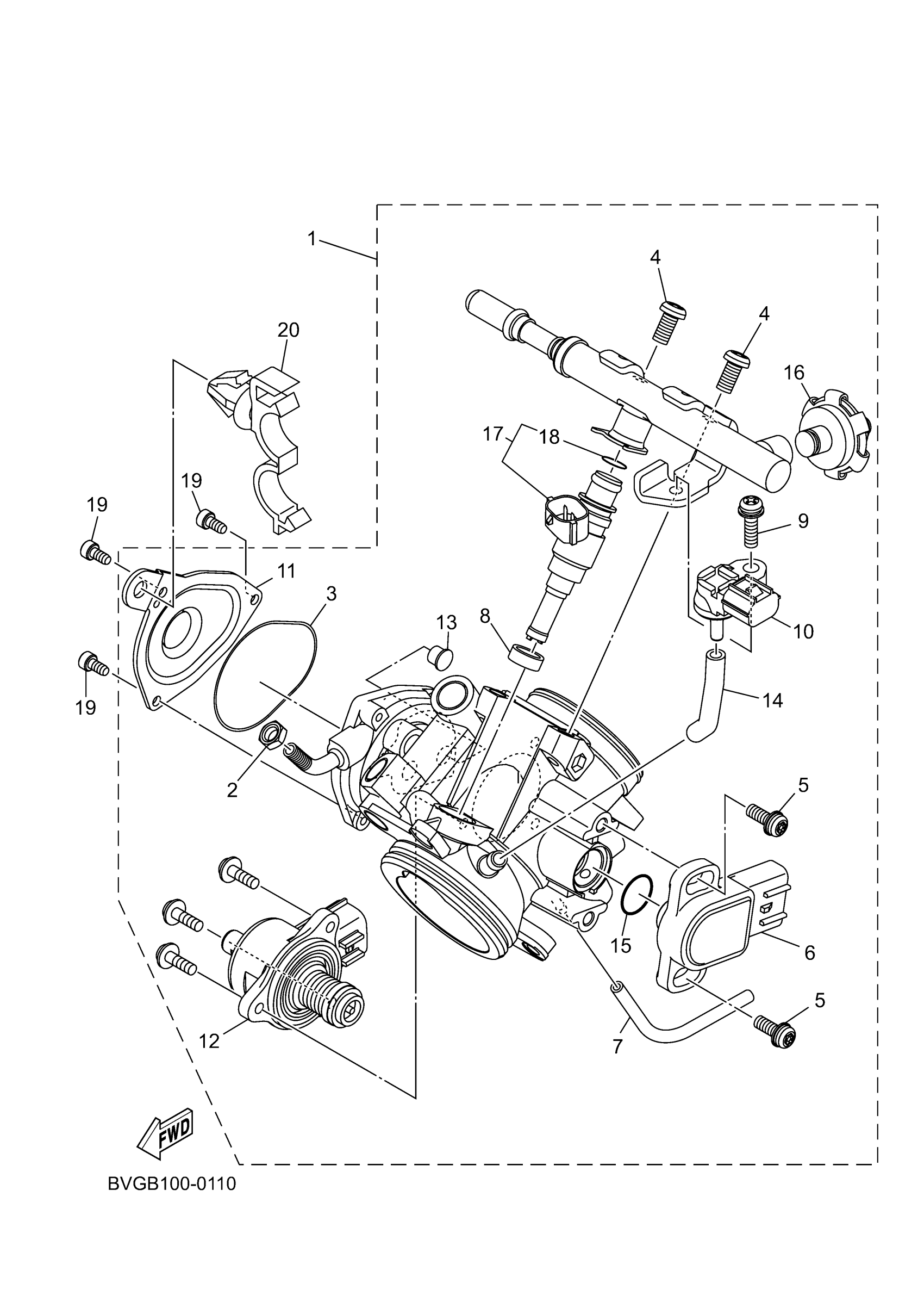 Yamaha YFM70KPHTF (KODIAK 700 EPS HUNTING) BVGM 2026 THROTTLE BODY ASSY 1 Diagram