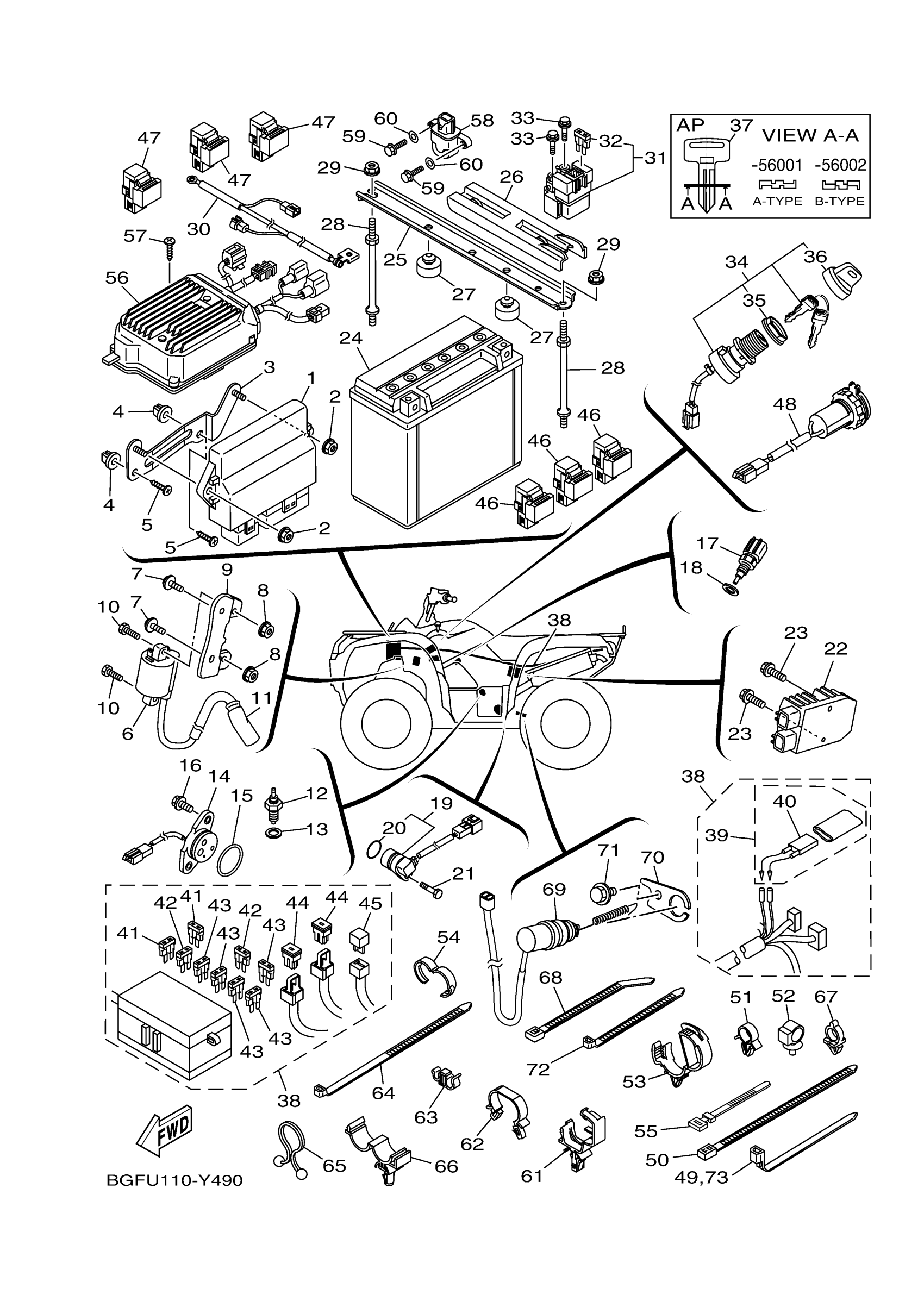 Yamaha YFM70KPSPB (KODIAK 700 EPS SE) BGFU 2023 ELECTRICAL 1 Diagram